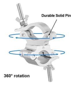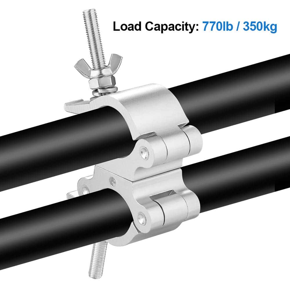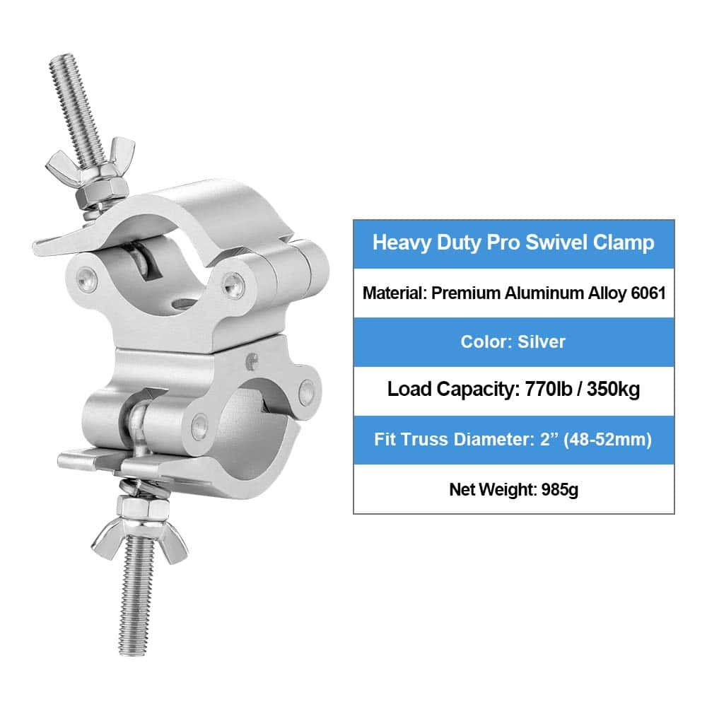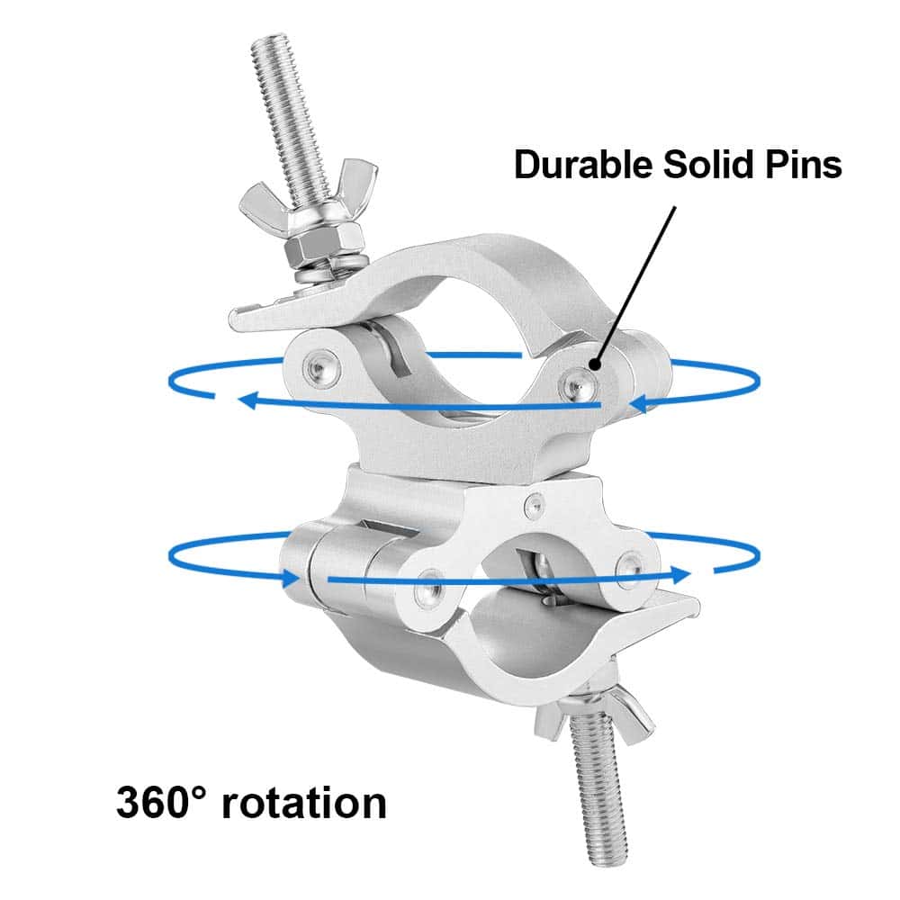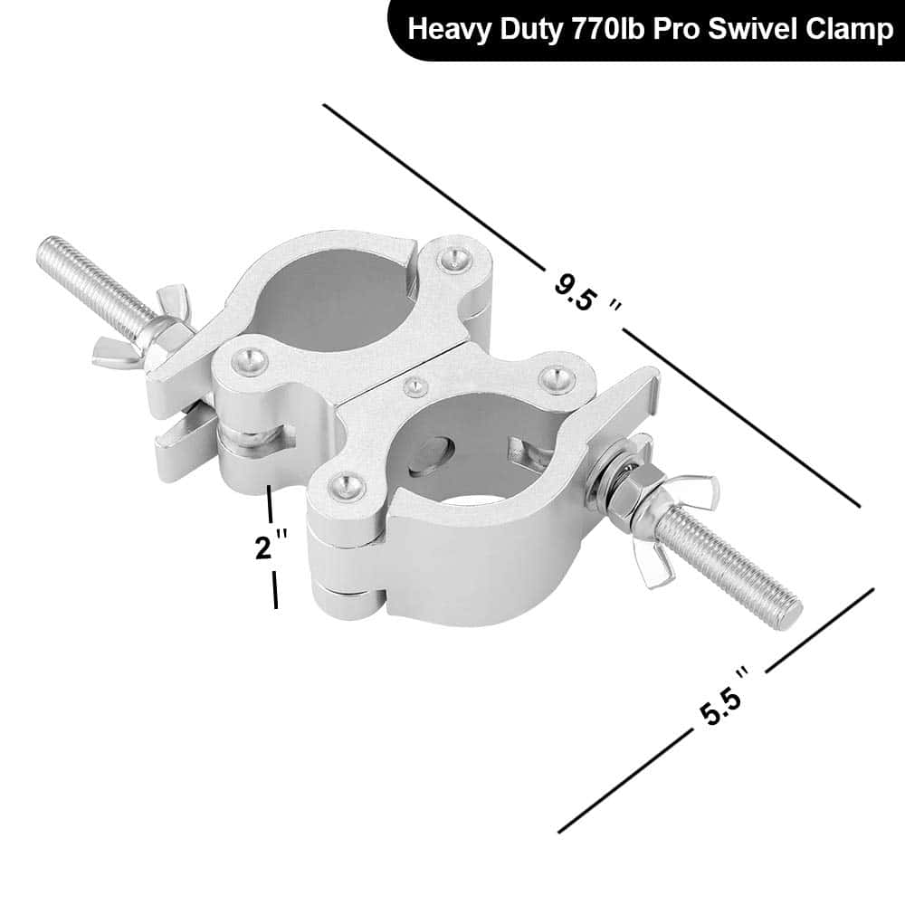 Eyeshot, nos especializamos en la venta de iluminación de escenario y accesorios de iluminación durante muchos años. En el pasado, nos enfocábamos principalmente en la venta al por mayor, ahora también vendemos nuestros productos en nuestra plataforma de tienda. Con años de experiencia en ventas y enfoque en productos, podemos proporcionar productos de alta calidad con mejores precios a cada cliente. ¡Esperamos que tenga una experiencia de compra perfecta al adquirir nuestros productos! Abrazadera de Truss Giratoria Premium de 2 Pulgadas de Eyeshot con Doble Cabeza de Abrazadera Coulper Especificaciones del Producto: Material: Aleación de Aluminio 6061 Premium Color: Plata Ajuste de Truss OD: 2 Pulgadas (48-52mm) Ancho: 50mm / 2 Perno Roscado: 10mm Capacidad de Carga: 770lb / 350kg Tamaño: 9.1 x 5.0 x 2 pulgadas Peso Neto: 985g / pc Seguro y Confiable: Construido con un perno de giro estándar de 1/2 pulgada, completamente envuelto alrededor de la truss con pasador sólido, más seguro y confiable. Consejo Cálido: Gracias por comprar las abrazaderas de truss giratorias Pro de Eyeshot, por favor realice una prueba de capacidad de carga máxima antes de utilizarlas. Paquete Incluido: 2 x Abrazaderas de Truss Giratorias Pro