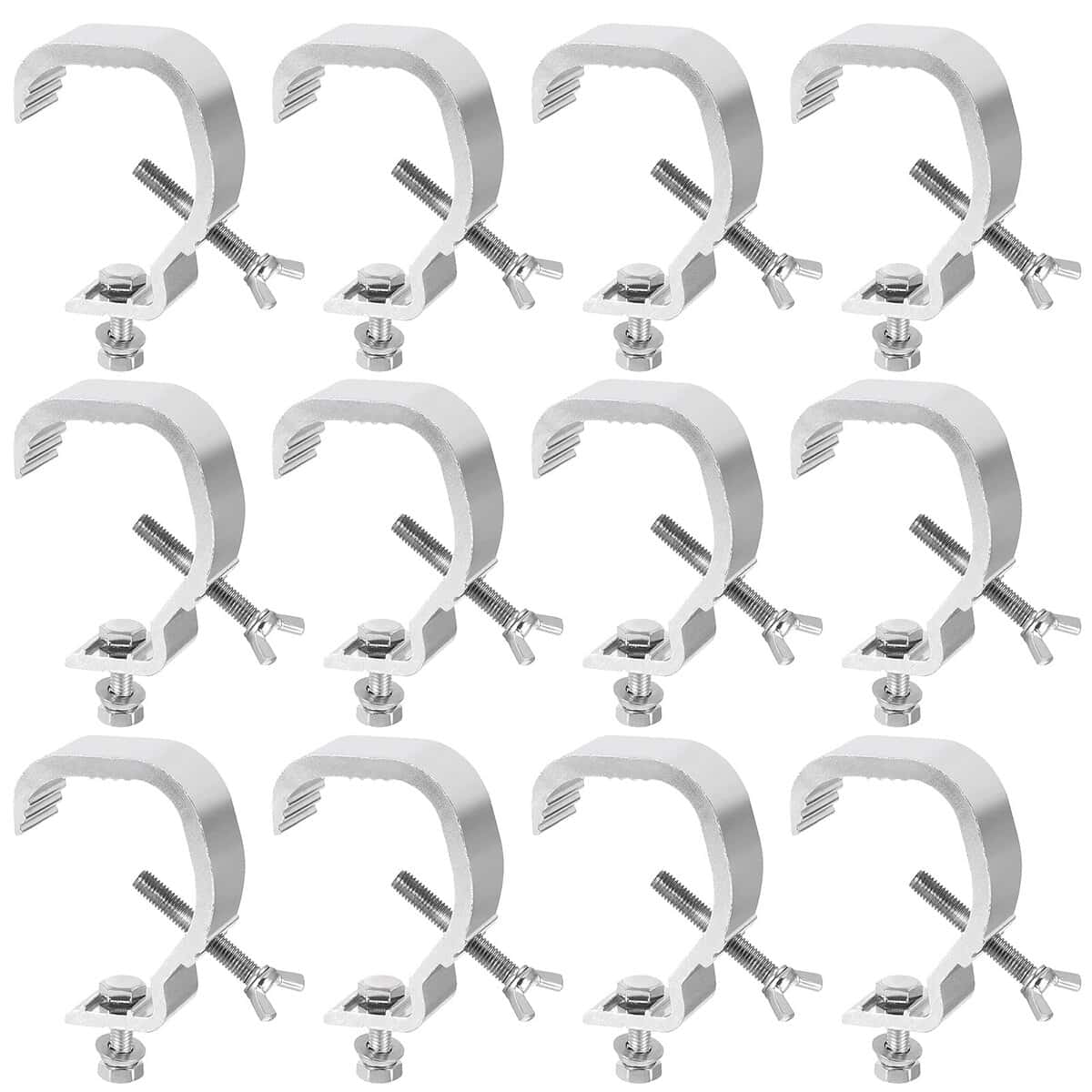 El paquete contiene 12 paquetes de abrazaderas de luz de escenario. El diámetro del perno roscado es de 1/3 de pulgada (8 mm).