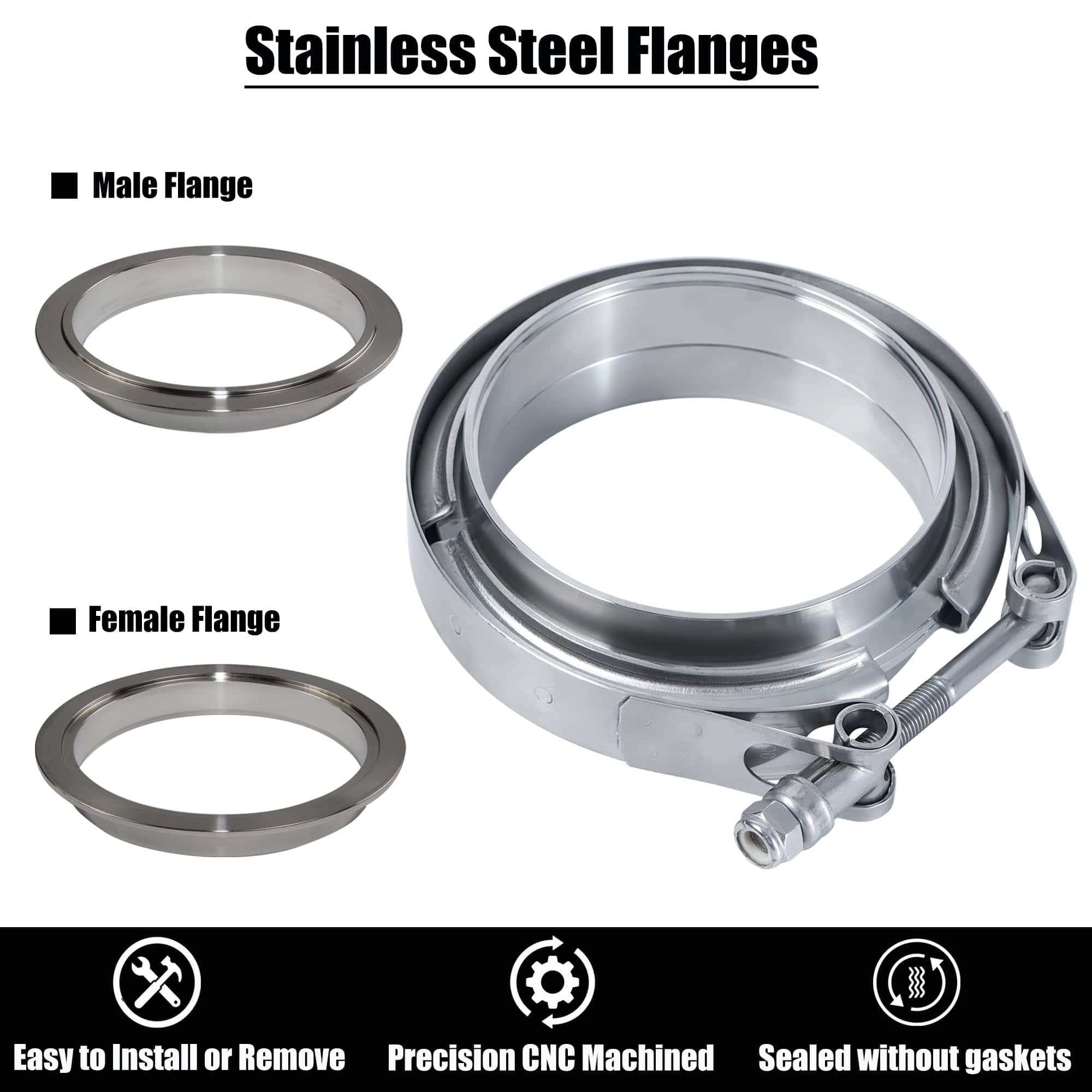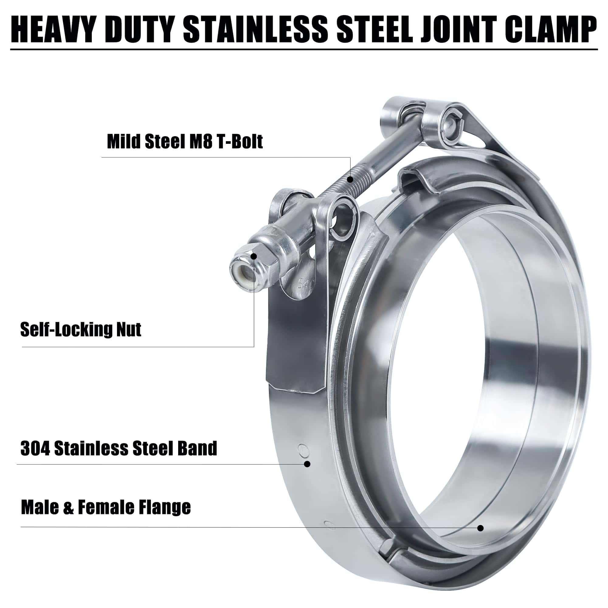 3. Ventaja: La abrazadera en V es fácil de instalar y quitar, perfecta para aplicaciones que requieren extracciones frecuentes y proporciona un gran sello con presión uniforme en la brida. Recibirás Abrazadera Vitonsbay de 4.5 pulgadas V Band con Brida Macho Hembra, guía de bienvenida, nuestra garantía de 6 meses sin preocupaciones y un servicio al cliente amigable.