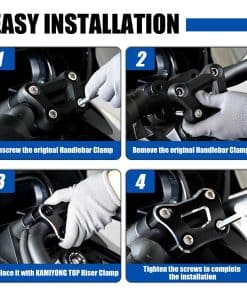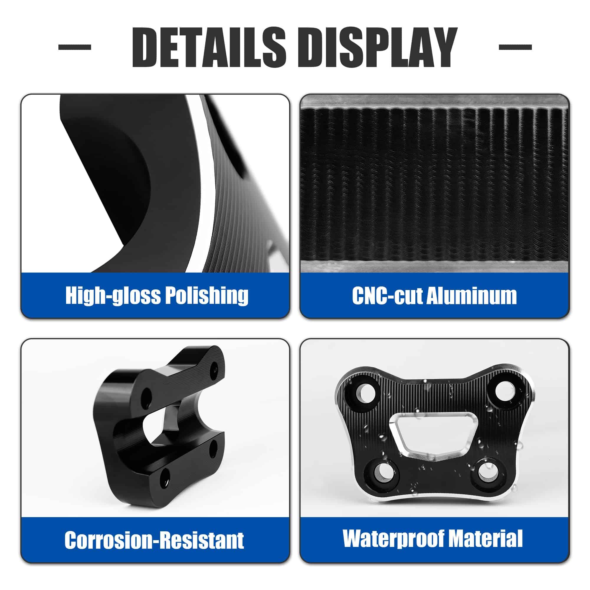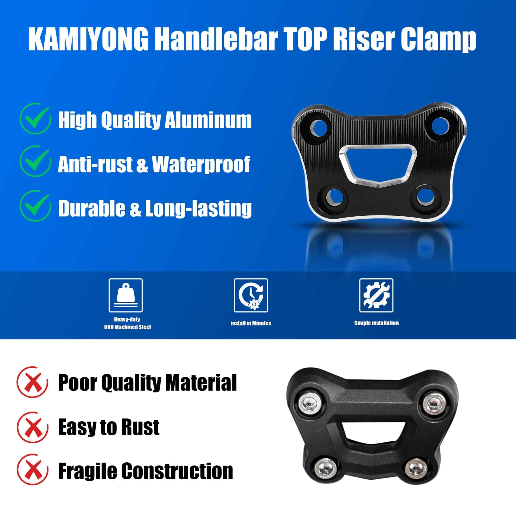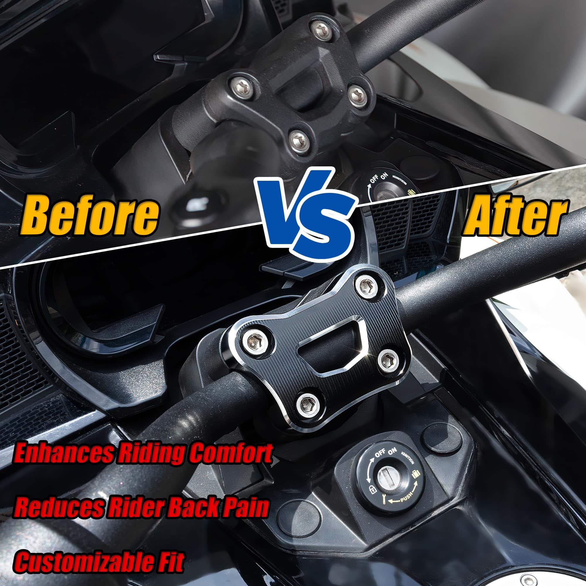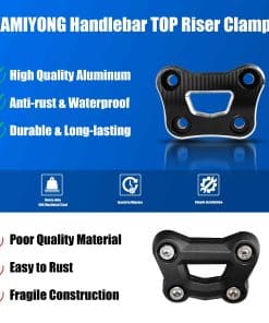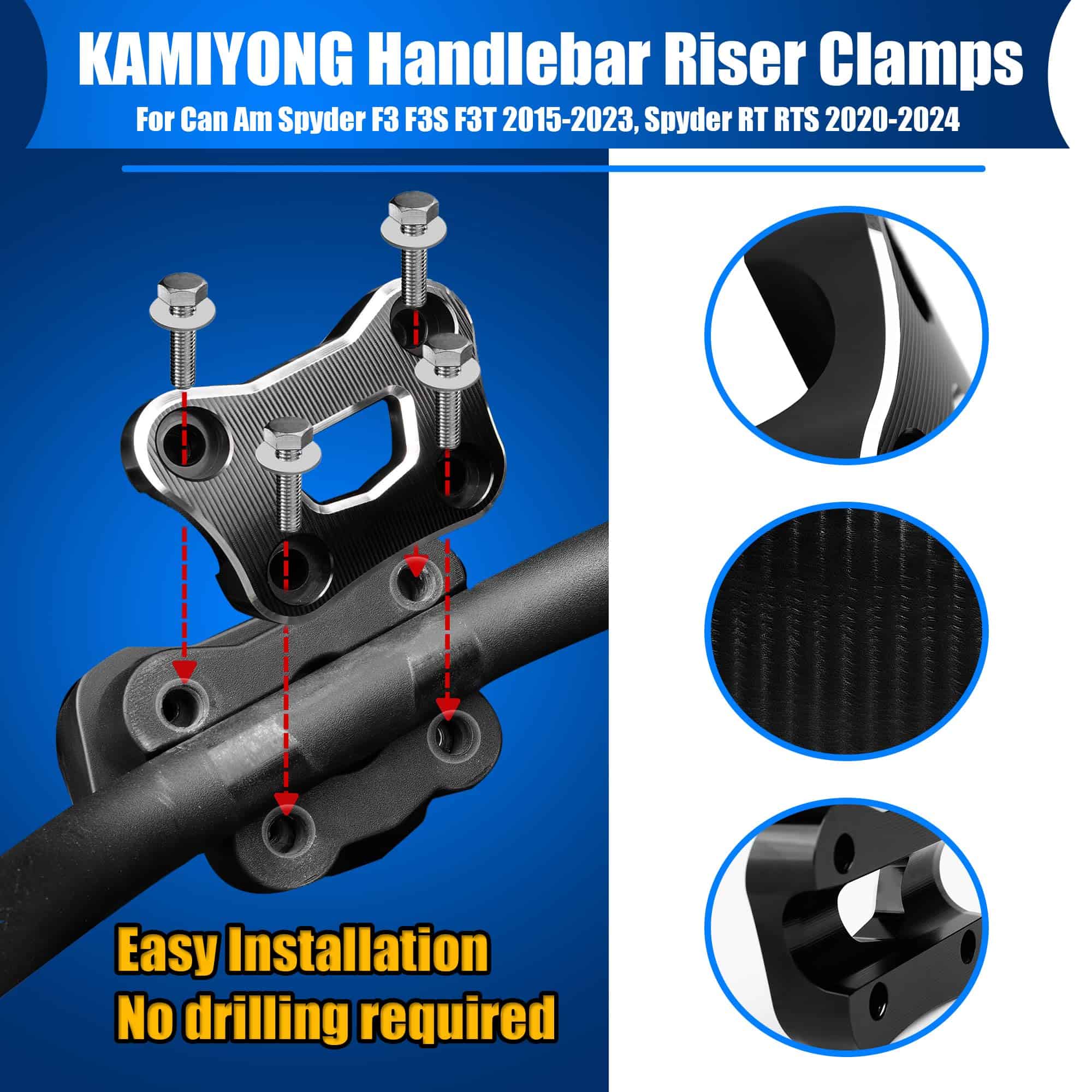 El kit de abrazadera de manillar de trike KAMIYONG está diseñado específicamente para los modelos Can Am Spyder F3 F3S F3T 2015-2023, Can Am Spyder RT RTS 2020-2024, asegurando un ajuste perfecto. Esta abrazadera de manillar elevador para Can Am Spyder está expertamente cortada por CNC a partir de materiales de aluminio de calidad para una durabilidad y estilo excepcionales. Mejora tanto el estilo como la funcionalidad de tu Can-Am Spyder con esta duradera abrazadera de manillar elevador a prueba de agua. Protege el manillar contra el polvo y el daño causado por el agua y está diseñado para durar más de 200,000 millas sin preocupaciones por fallos en el viaje por carretera. Nuestra abrazadera de manillar elevador TOP está diseñada para ser colocada con tornillos originales que permiten una instalación rápida sin necesidad de modificar o perforar.