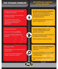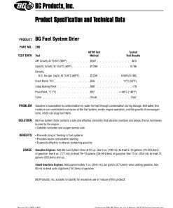 El Absorbente de Humedad para Sistema de Combustible BG absorbe de manera segura y efectiva la humedad, manteniéndola en suspensión hasta que pueda ser quemada por el motor. Mejora el arranque en climas fríos y previene la formación de hielo o congelación causada por la acumulación de humedad en sistemas de combustible diésel y gasolina.