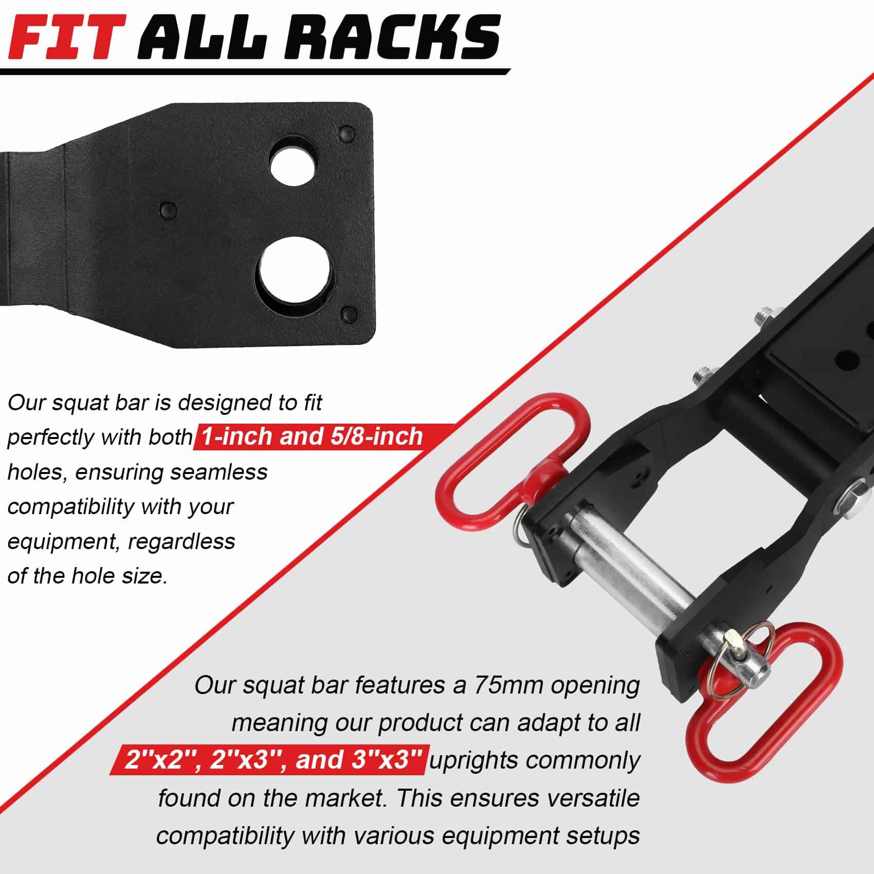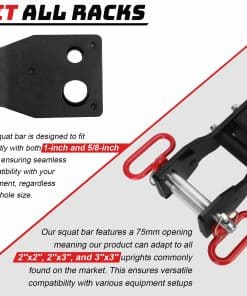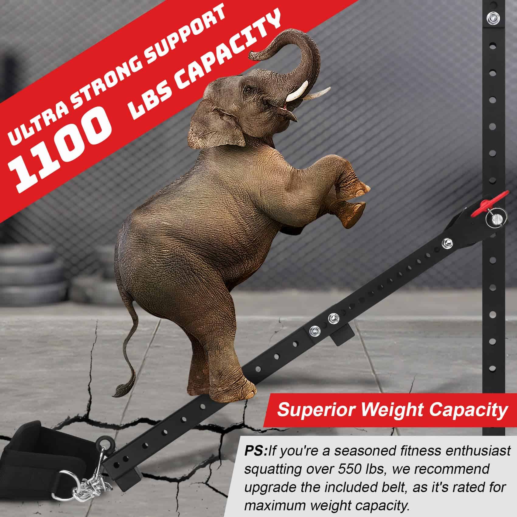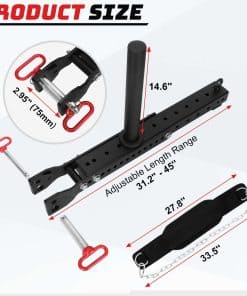 Invierte en durabilidad con el Sistema de Sentadillas con Cinturón Betollo. Fabricado con materiales premium y con un resistente marco de acero construido a partir de una placa de acero de 9 mm, nuestro Sistema de Sentadillas con Cinturón garantiza longevidad y fuerza inigualables. Con una capacidad de peso superalta de 1100 libras, este accesorio es la mejor opción para tus sesiones de sentadillas. Disfruta de una experiencia de entrenamiento personalizada con múltiples puntos de ajuste. El Sistema de Sentadillas con Cinturón Betollo se adapta a usuarios de todos los tamaños, con los brazos de palanca ajustables que van desde 31,2 hasta 45 pulgadas de longitud. Además, nuestro Accesorio de Sentadillas con Cinturón se adapta perfectamente a agujeros de 1 pulgada y 5/8 de pulgada, con una apertura de 75 mm, garantizando compatibilidad con todos los montantes comunes de 2»x2», 2»x3» y 3»x3» en el mercado. Experimenta un confort incomparable durante tus sentadillas con el Sistema de Sentadillas con Cinturón Betollo. Nuestro cinturón de sentadillas acolchado y ajustable distribuye el peso de manera uniforme, reduciendo la presión en tu espalda y caderas para una sesión de sentadillas enfocada y cómoda cada vez. Prioriza la seguridad en tu rutina de entrenamiento de fuerza con altura y ancho ajustables, garantizando un entorno de entrenamiento seguro y estable con el Accesorio de Sentadillas Betollo. Eleva tu rutina de piernas con el Sistema de Sentadillas con Cinturón Betollo. Más allá de las sentadillas tradicionales, este versátil accesorio permite una variedad de ejercicios de la parte inferior del cuerpo, incluidas prensas de piernas, peso muerto y empujes de cadera, ayudándote a trabajar diferentes grupos musculares y lograr un regimen de entrenamiento completo con la Máquina de Sentadillas con Cinturón Betollo. Disfruta de la conveniencia del diseño de nuestro producto sin necesidad de ensamblaje y transporte de cuerpo completo hacen que la configuración sea muy fácil, permitiéndote centrarte únicamente en tu entrenamiento sin la molestia de procesos de ensamblaje complicados.
