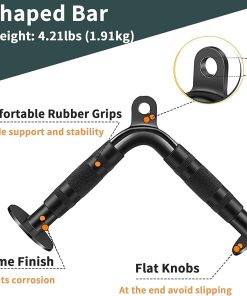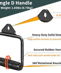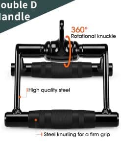 4. MANGO DOBLE EN D – Construido con acero sólido de alta calidad con acabado cromado sin bordes afilados; Los agarres de goma texturizada ergonómicos aumentan la durabilidad para proporcionar una fuerza equilibrada a ambos brazos durante un entrenamiento. El nudillo de rotación de 360 y el agujero de 0.59 se adaptan fácilmente a cualquier sistema de gimnasio universal para un entrenamiento más versátil y multiuso.