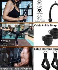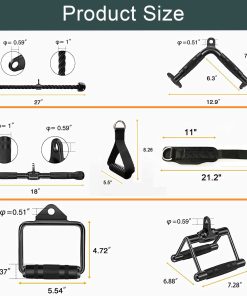 Combo Incluye 1x Cuerda de Tríceps, 1x Mango en V (Mango Doble en D), 1x Barra en Forma de V, 1x Barra Giratoria Recta, 1x Mango Doble en D, 2x Correas para Tobillo, 2x Mangos para Máquina de Cable y 5x Ganchos de Presión. Estos accesorios para gimnasio en casa para hombres y mujeres están diseñados para adaptarse a la mayoría de los sistemas de cables.