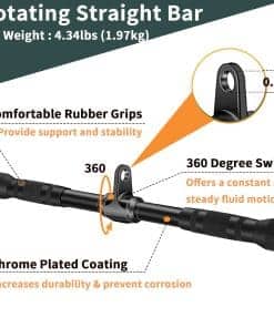2. BARRA RECTA GIRATORIA DE ACERO – Acero de gran resistencia con mangos de goma evita la corrosión, el deslizamiento y soporta un peso de hasta 880 lbs. La longitud de 18 pulgadas y el giro de 360 grados están diseñados para proporcionar un movimiento fluido constante y estable durante un entrenamiento y se ajustan bien en tu mano.