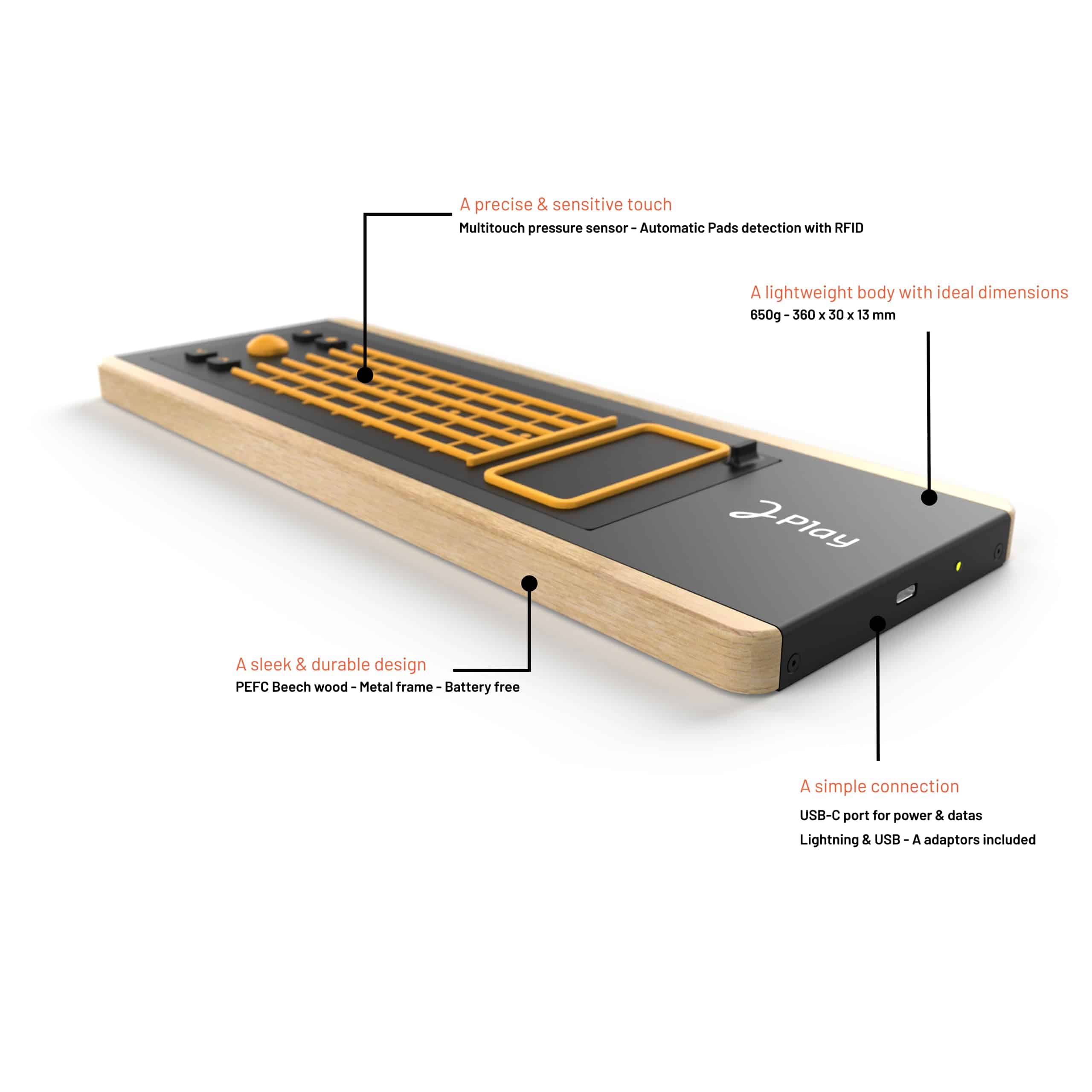 En la encrucijada entre instrumentos tradicionales e instrumentos digitales, Joué Play reacciona como un instrumento tradicional. Es sensible a gestos naturales como el vibrato o el glissando, para una experiencia de interpretación auténtica.
