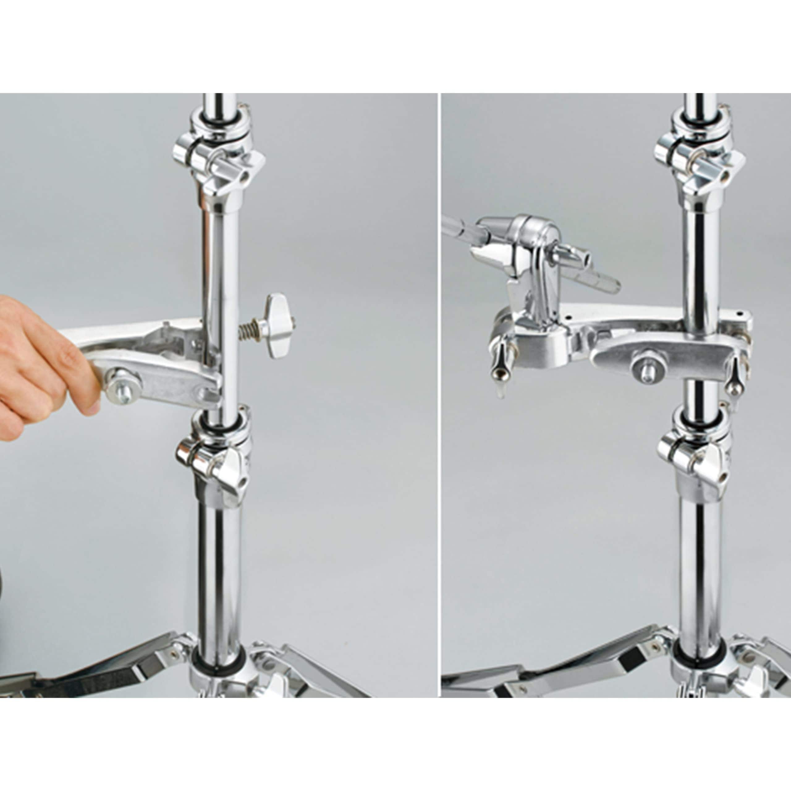 El accesorio de hi-hat recién diseñado (MHA823) permite una mejor posición de un soporte de hi-hat mientras se utiliza una configuración de doble bombo. Al conectar el MHA823 al aro del bombo, el soporte de hi-hat puede mantenerse vertical sin abrir las patas del soporte. Al utilizar el sistema Omni-Ball de TAMA, la pinza ahora es ajustable infinitamente a cualquier ángulo y permite una mayor flexibilidad de configuración. Además, se han equipado amortiguadores de goma para proteger el aro del bombo de posibles daños. La pinza es adaptable a cualquier soporte de hi-hat con un diámetro de tubo de 15.9 – 28.6mm utilizando el Sistema de Montaje Rápido FastClamp.