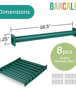 DISEÑADO PARA DURAR: Estas barras de mono para interiores o exteriores para niños están construidas con una construcción duradera y placas de montaje resistentes para soportar incluso el juego más enérgico, garantizando años de uso. SEGURIDAD DE AGARRE: Con barras texturizadas que proporcionan un agarre firme y estable, los padres pueden estar seguros de que sus hijos no se resbalarán al usar estas barras de mono. Siempre se sentirá seguro con estas barras de mono. RESISTENTE A LA INTÉMPERIE: Disfrute de la diversión al aire libre durante todo el año con estas barras de mono para juegos de patio, ya que están recubiertas con una capa de polvo resistente a la intemperie que mantiene su aspecto brillante y verde independientemente del clima. USO VERSÁTIL Y FÁCIL DE INSTALAR: Ya sea que esté buscando una divertida adición a la sala de juegos de su hijo o una actividad al aire libre para los niños, este juego de barras de mono se puede utilizar tanto en interiores como en exteriores. La instalación es sencilla con las instrucciones proporcionadas. GARANTÍA DE CALIDAD – Barcaloo respalda todo su equipo de juegos, si surgen problemas, póngase en contacto, estaremos encantados de ayudarle. DISEÑADO SOLO PARA USO RESIDENCIAL: No está destinado a un uso de grado comercial.