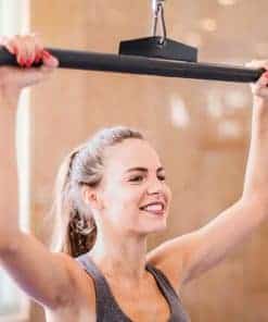 Barra de Polea para Lat Pull down con Empuñaduras de Goma, Barra de Tríceps con mango antideslizante Nuestra barra de fitness es exclusivamente para gimnasios comerciales. Está hecha de tubo de acero hueco de alta calidad con cómodos mangos de goma. Y tiene la soldadura más larga de doble lado para garantizar el peso máximo. Las barras con estriado son herramientas muy importantes para los atletas que buscan desarrollar su espalda. Las barras se pueden fijar a cualquier máquina de pull down para apuntar a la zona lumbar, manguitos rotadores, deltoides posteriores, bíceps y antebrazos.