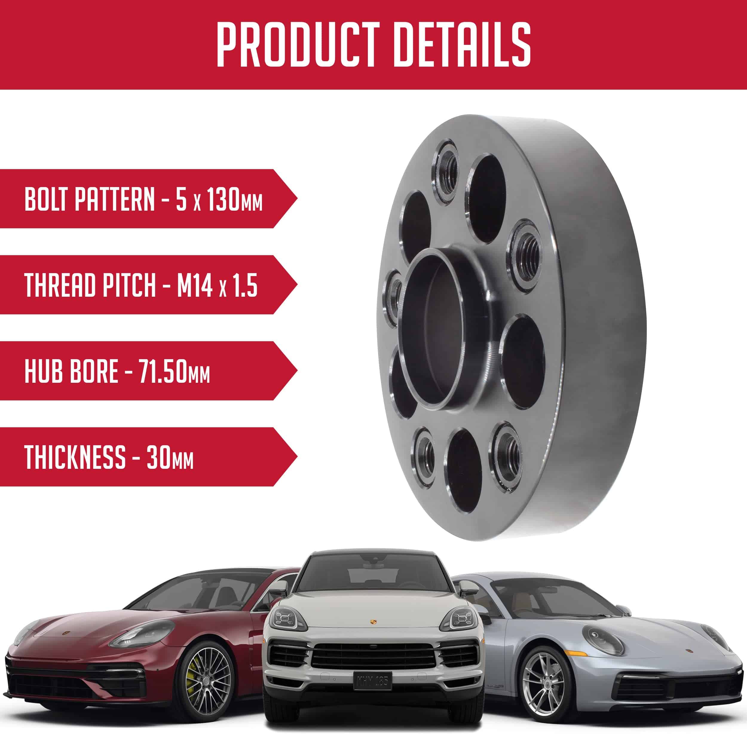 Accesorios de Rueda Partes 1 Pieza Separador de Rueda Tuner Hub Centric para Vehículos Europeos con Pernos Negros M14 1.50 de 30mm de Grosor 5 en Patrón de Perno 130mm PCD 71.50mm Vehículo y Cubo de Rueda Apto para Porsche Audi VW