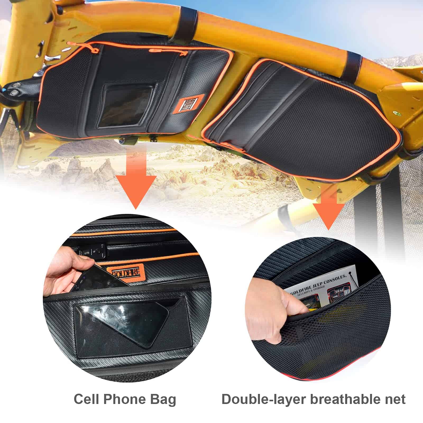 2. Diseño Moda y Duradero, material resistente a la intemperie. No solo proporciona almacenamiento muy necesario para tu Polaris RZR 1000, también proporciona un almacenamiento muy necesario en la cabina. También cuenta con un bolsillo claro y de fácil visualización para navegación todoterreno.