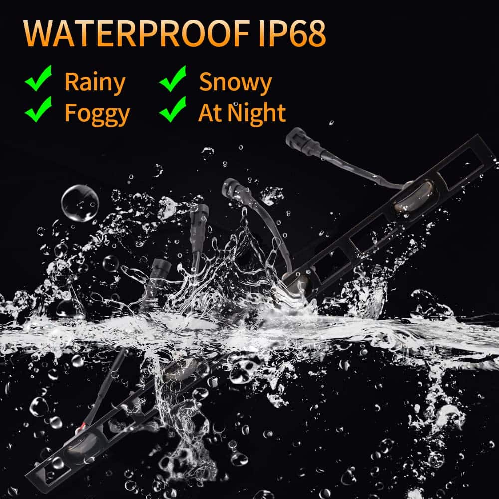 3. Impermeable y Material ABS Premium IP68 impermeable. Fabricado en material ABS duradero, alta resistencia, resistencia a la intemperie, buena resistencia al calor y corrosión, no desvanecimiento, no decoloración. Las luces no parpadearán ni se apagarán cuando golpee un bache o haya demasiado viento.