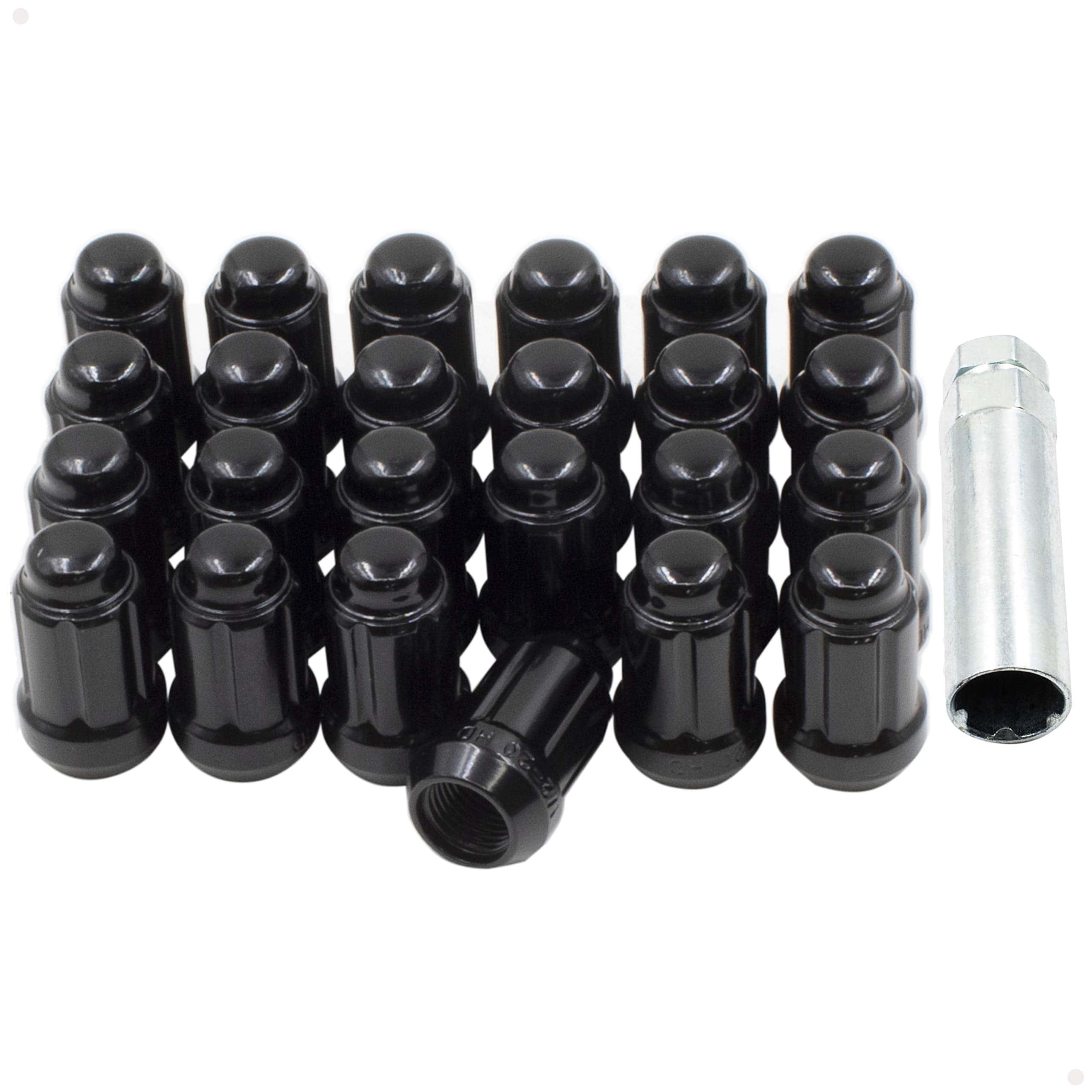 3. 24 Pcs + Llave M12 x 1,5 Rosca Tipo Coche Estriada Longitud: 35mm 1,38″ Acabado: Negro Hexagonal: Estriada Construcción de 2 Piezas.