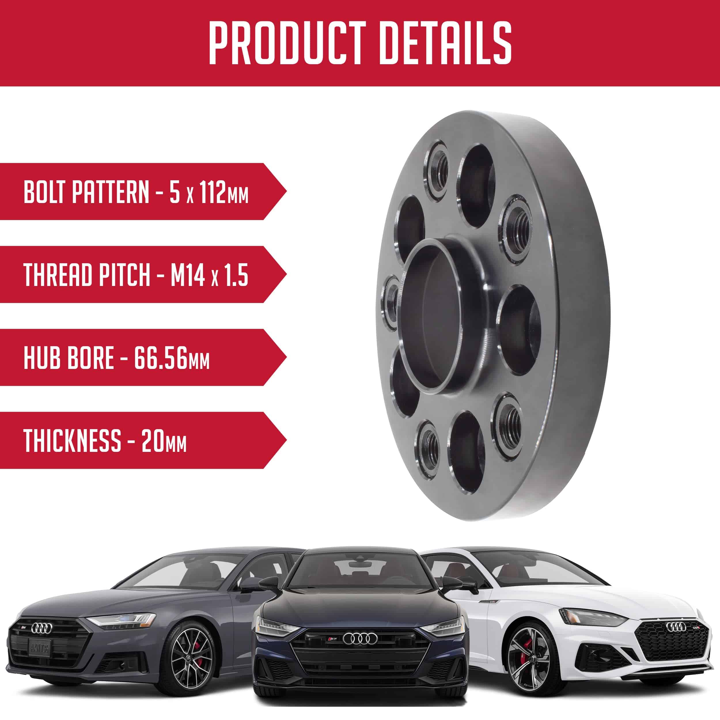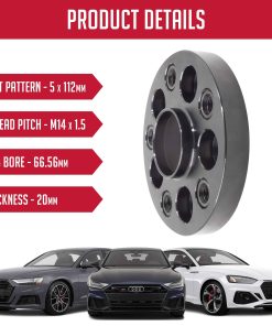 Accesorios para ruedas Parts 1 Pieza Separador de rueda Centrico del cubo para vehiculos europeos con pernos negros M14 1.50 de 20 mm de grosor 5 en 112mm patron de perno PCD 66.56mm Vehiculo & Cubo de rueda compatible con VW & Audi