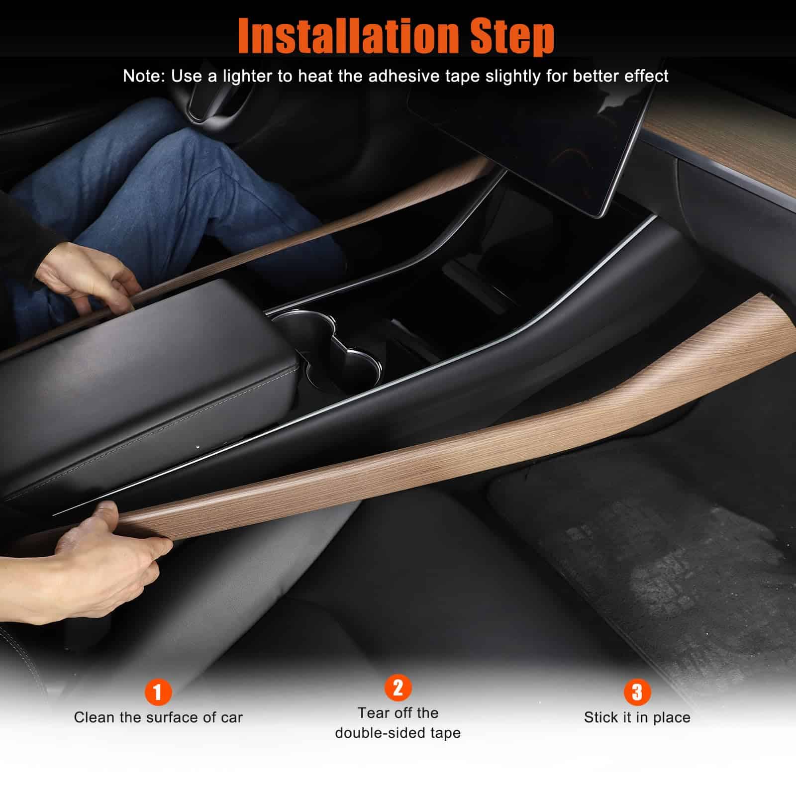 5. Instalación más fácil La cubierta central de la consola de madera genuina está hecha con un diseño autoadhesivo con un adhesivo especial de doble cara en el dorso. Desprende y pega – Instalación sin daños. Atención: ¡Por favor, limpie la superficie antes de la instalación!