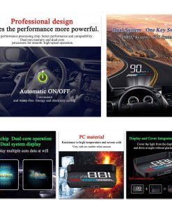 ¿Qué es HUD? Abreviatura de Head Up Display. Muestra datos de conducción en el parabrisas delantero como la velocidad, RPM, temperatura del agua, voltaje, kilometraje único, etc. HUD evita el peligro de que los conductores miren hacia abajo en el tablero. Asegura la seguridad de los conductores al ver los datos en el vidrio delantero del automóvil y ayuda a los conductores a mantener el mejor estado en el camino. Se pueden intercambiar una variedad de modos de interfaz de funcionamiento y colores, lo que le brindará más diversión y sentido tecnológico. Pantalla simple Velocidad del vehículo + RPM del motor, Pantalla HD, función práctica, que te permitirá conducir más cómodamente durante mucho tiempo. (plug and play: disponible para el 95% de los automóviles con interfaz OBD2/GPS) El proyector de alta claridad con nanotecnología elimina los reflejos no deseados y hace que la información de la pantalla sea más nítida. El modo de ajuste de brillo automático y manual, que hace que el HUD sea más fácil de controlar. Múltiples funciones: Iluminación ambiental decorativa, RPM del motor, Alarma de código de falla, Alarma de conducción con fatiga. Icono de alarma Sensor de luz: el HUD puede ajustar automáticamente el brillo según el entorno. Unidad de velocidad: KM/h, MPH. Zona de funciones múltiples: velocidad, temperatura del agua, voltaje de la batería, distancia de conducción Icono de temperatura del agua, icono de voltaje. Atención Compatible El modo OBD2 solo está disponible para la mayoría de los vehículos fabricados después de 2008. Modo GPS Perfecto para Todos los Vehículos. (Si tu automóvil no es compatible con el modo OBD, por favor, gira el botón de rueda a la izquierda o a la derecha para cambiar al modo GPS en los 5 segundos posteriores a encender el HUD.) Sistema Dual, el modo OBD2 no es compatible con vehículos eléctricos híbridos, automóviles diésel, camionetas pick-up, vehículos recreativos y automóviles modificados por computadora; se recomienda usar el modo GPS. SERVICIO DE CALIDAD Certificación CE FCC RoHS, Calidad superior. El chip con un rendimiento y compatibilidad poderosos garantiza un funcionamie… (truncated)…