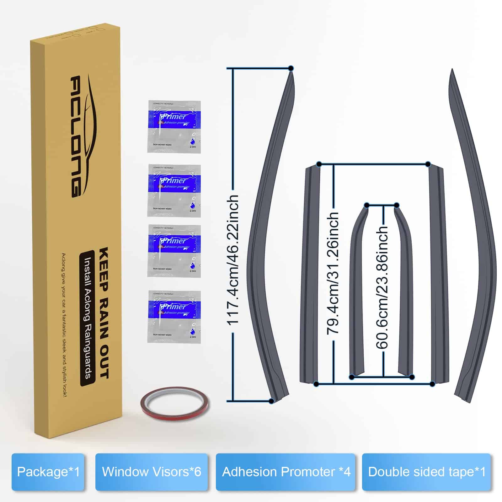 Fácil de instalar: NO se necesita ningún hardware especial, NO es necesario perforar, solo en 10-15 minutos los visores de las ventanas pueden instalarse. El visor de lluvia incluye cinta adhesiva, es muy estable y no se desprenderá en la carretera.