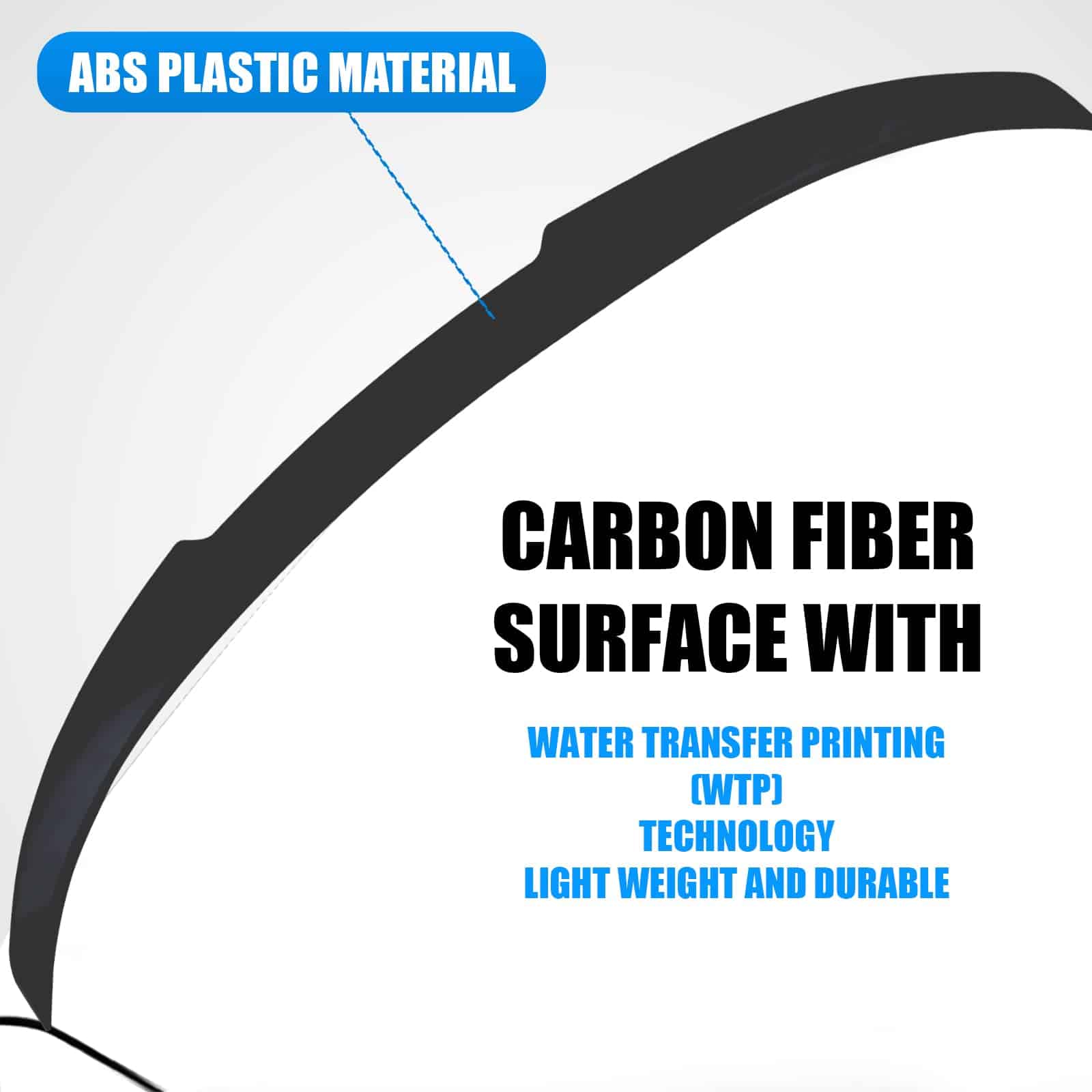 3. ESTILO NEGRO MATE: Utiliza tecnología de impresión de transferencia hidrográfica para obtener un aspecto negro mate, el material no es fibra de carbono real pero tiene un aspecto negro brillante. Este alerón también puede hacer que tu coche sea más lujoso. 100% nuevo. Nuestro alerón trasero añadirá un aspecto elegante y deportivo a su coche.