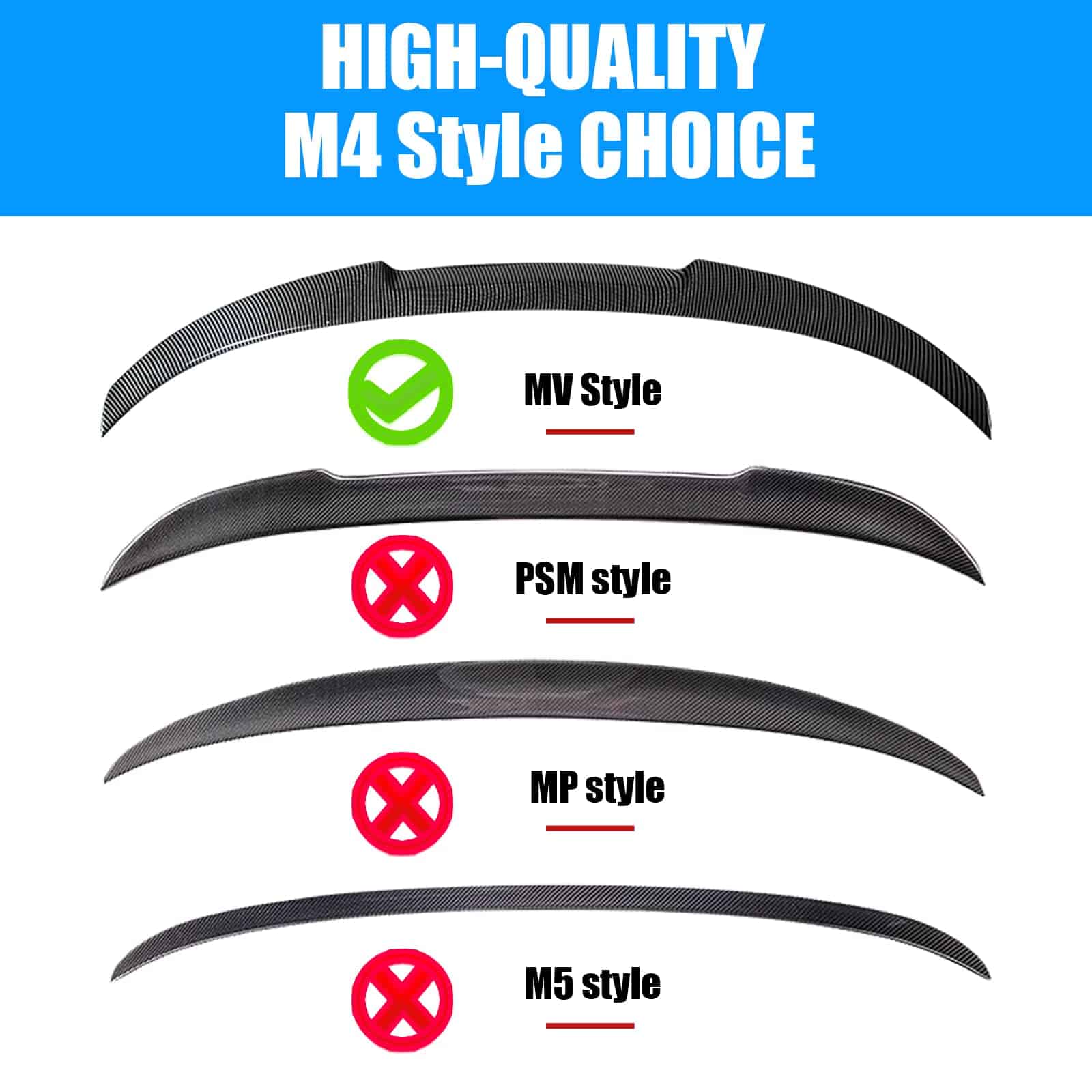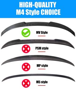 4. TIPO M4: Mejorará drásticamente la apariencia deportiva M4 de su coche. El nuevo alerón funciona bien y mejora el rendimiento general en manejo y durabilidad, por lo que el coeficiente de arrastre se reduce correspondientemente y la resistencia al aire del coche se reduce. Por lo tanto, la adición de este alerón también es útil para ahorrar combustible.