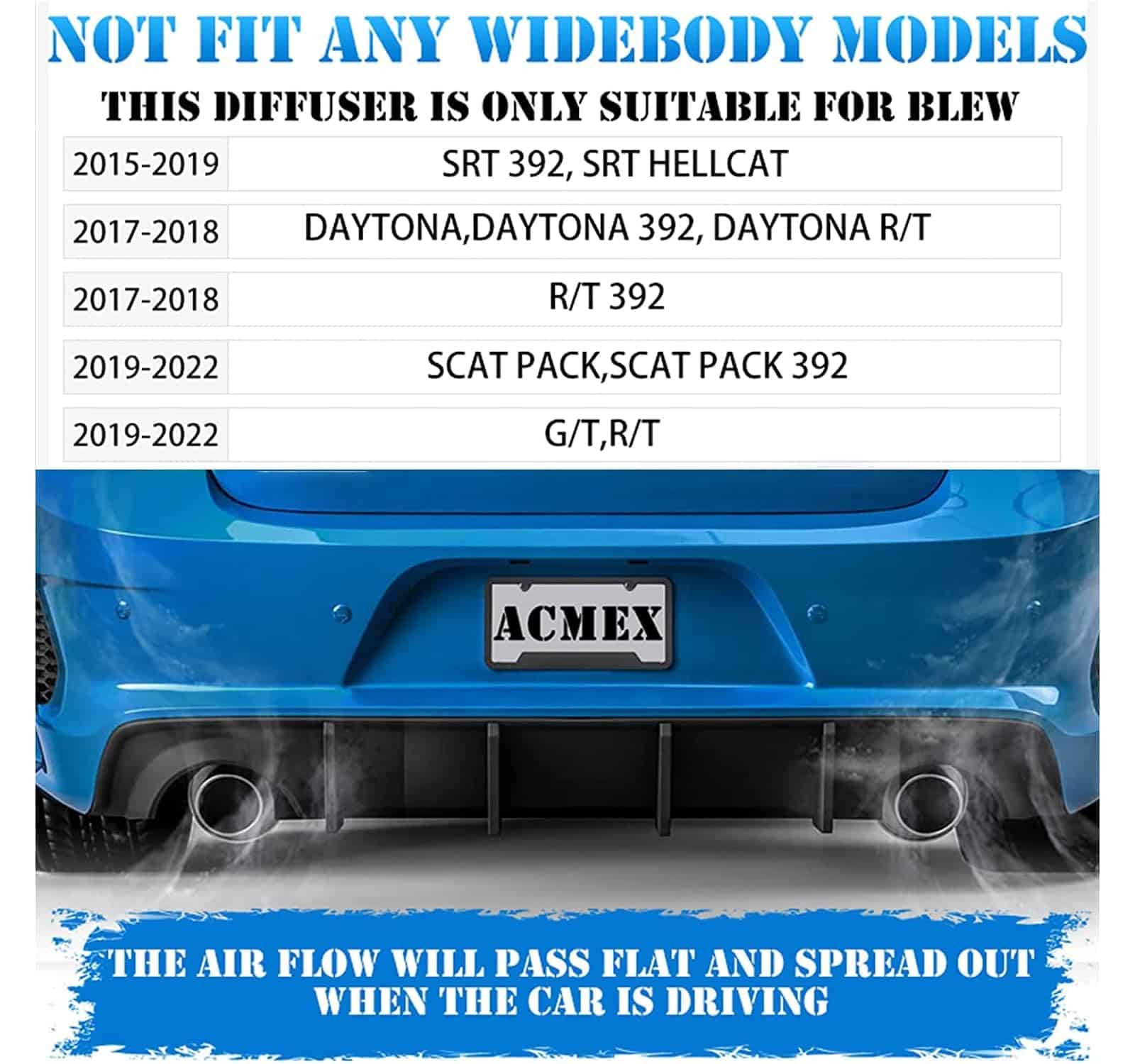 Acmex Difusor Trasero Compatible con Dodge Charger SRT