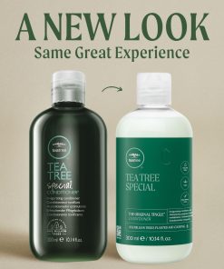 Tu cabello merece un tratamiento especial. Renueva y revive con el refrescante cosquilleo del Acondicionador de Árbol de Té Especial. Este acondicionador vigorizante contiene una mezcla botánica hidratante que ayuda a suavizar, alisar y combatir los enredos para una manejabilidad instantánea. El aroma fresco de árbol de té, menta y lavanda vigoriza el cuero cabelludo y deja el cabello oliendo genial. Prefiere reducir y reutilizar Nuevas Botellas de Aluminio de árbol de Té Especial ya vienen prellenadas con el cosquilleo que amas; ¡después de usarlas una vez, reutilízalas una y otra vez con las Bolsas de Recarga de Litros de Árbol de Té Especial! Hechas con un 30% de plástico reciclado postconsumo (PCR), las bolsas de recarga de litros ayudan a reducir los residuos en vertederos, el uso de agua, el uso de plástico y las emisiones de gases de efecto invernadero. Además, menos empaque ahorra espacio y dinero con un ahorro de costos sobre las botellas. ¡Únete a la revolución de la recarga! Comparación del Análisis de Ciclo de Vida Simplificado de PTIS de las Bolsas de Árbol de Té vs. Botellas de Litros de Árbol de Té basado en una evaluación de terceros utilizando EcoImpact-COMPASS. Basado en datos de EE. UU. Tipo de Cabello: Ideal para Todos los Tipos de Cabello. Fragancia: El aroma revivificador de árbol de té proporciona una experiencia inspiradora de aromaterapia como ninguna otra. NOTA: Nuestro empaque está cambiando y el producto que recibas puede variar de las imágenes que se muestran. Historia de la Marca. Tea Tree es cuidado botánico del cabello de John Paul Mitchell Systemsel líder en productos de calidad de salón que está comprometido con la industria de belleza profesional. Cada compra apoya a los salones de JPMS con una comisión.
