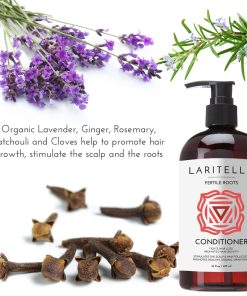 Acondicionador Orgánico Laritelle 16 oz | Fortificante, Fortalecedor y Rejuvenador | Previene la Caída del Cabello, Promueve el Nuevo Crecimiento del Cabello | Hierbas Ayurvédicas, Lavanda, Jengibre, Romero, Pachulí y Clavos. MADE WITH 100% PURE, HIGHEST QUALITY, CERTIFIED ORGANIC INGREDIENTS. Formulado con un 98% de ingredientes orgánicos certificados y un 2% de ingredientes silvestres / naturalmente derivados. Nuestros ingredientes son obtenidos de distribuidores que venden productos extraídos / destilados de plantas que no han sido rociadas o tratadas con productos químicos. EXTRA KIND & GENTLE para tu cuero cabelludo y cabello. Acondicionador orgánico rico & cremoso. Nutritivo para todo tipo de cabello. Seguro para cabello teñido. EARTH FRIENDLY, SAFE AND NON-TOXIC. NO SE UTILIZAN PRODUCTOS QUÍMICOS DAÑINOS – No contiene sulfatos, alcohol, parabenos, gluten, ftalatos. Libre de OMG. No probado en animales. Empacado en contenedores de plástico reciclable LIBRE DE BPA. HAND POURED WITH LOVE AND EXTRA CARE. Equilibra y apoya el 1er chakra. Orgullosamente hecho en California, USA.