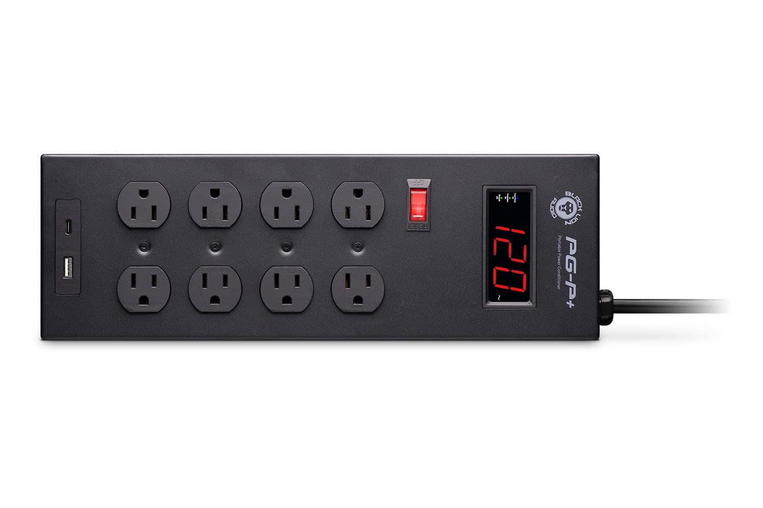 Claridad de señal constante en cualquier momento y lugar El protector de sobretensión portátil PG-P Plus de Black Lion Audio va mucho más allá de una regleta de alimentación estándar. Además de suministrar ochenta tomas de corriente independientes y conexiones adicionales de energía USB-A/USB-C, el PG-P Plus contiene la tecnología de filtrado PG-P a bordo y capacitores Panasonic de alta gama, capaces de filtrar hasta 3 veces la cantidad de ruido perjudicial para mantener sus señales libres de cualquier perturbación de alimentación. Además, para asegurarse de que sus niveles permanezcan controlados, los grandes indicadores de estado LED y un medidor de voltaje a bordo garantizan que tenga un ojo práctico en el rendimiento de su energía en todo momento. Como hemos descubierto a través del uso extensivo aquí en Sweetwater, los pies empotrados del PG-P Plus mantienen fuera de cuestión el deslizamiento en una serie de espacios de rendimiento, con soporte extendido para opciones de montaje con tornillos y gancho y bucle. En resumen: la energía en el escenario y en el estudio es mucho más que tener un exceso de conexiones.