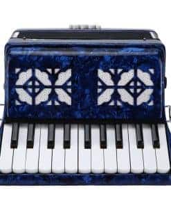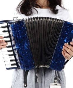 Especificación: Tipo de artículo: Acordeón Material: ABS + Madera Maciza + Fuelle de Piel de Vaca Color: Azul El acordeón está hecho a mano seleccionando finos materiales de trabajo. La apariencia general es elegante, hermosa y atmosférica; el cuerpo del piano adopta teclas de alta calidad, cambio de tono de múltiples velocidades, reproducción libre, control libre, y le brinda una mejor textura; el fuelle está hecho de piel de oveja suave, y el cierre es bueno y; el botón de bajo es receptivo, de fuerza moderada; lengüetas importadas, bajo y Agudos fuertes. Lista de paquetes: 1 x Acordeón 1 x Paño 2 x Guantes 2 x Correa de Acordeón