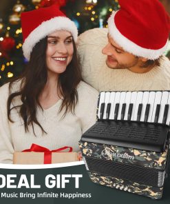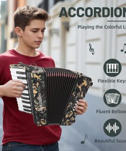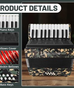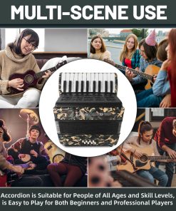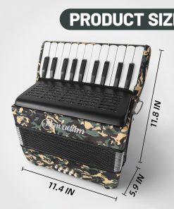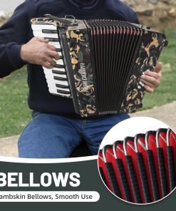 El acordeón de 22 teclas y 8 bajos es el instrumento perfecto para músicos profesionales y principiantes por igual. Con teclas clásicas en blanco y negro que ofrecen una experiencia similar a la de un piano, este acordeón garantiza un toque cómodo y familiar para un juego más gratificante. Las teclas de bajo son ligeras y flexibles, diseñadas para ser fáciles de usar y adecuadas para jugadores de todas las edades. El fuelle de cuero premium seleccionado garantiza una excelente estanqueidad y mejora la calidad de sonido, mientras que el protector de viento de aleación de aluminio protege el instrumento de impactos o daños. Compacto pero potente, con 22 teclas tipo piano y 8 teclas de bajo, este acordeón ofrece una amplia gama de posibilidades musicales en un diseño versátil. Exprésate musicalmente con confianza y pasión con este acordeón de calidad superior.