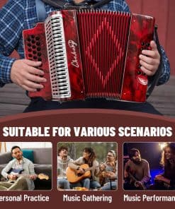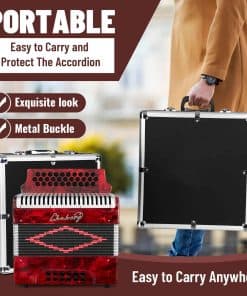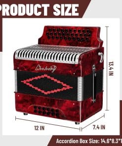 1. Diseño versátil de acordeón diatónico push-pull: Nuestro acordeón de 31 teclas y 12 bajos cuenta con un innovador diseño diatónico push-pull, perfecto tanto para músicos profesionales como principiantes. Este mecanismo único permite a los músicos explorar una amplia gama de tonos sin esfuerzo, siendo ideal para música folclórica, actuaciones tradicionales y composiciones modernas.