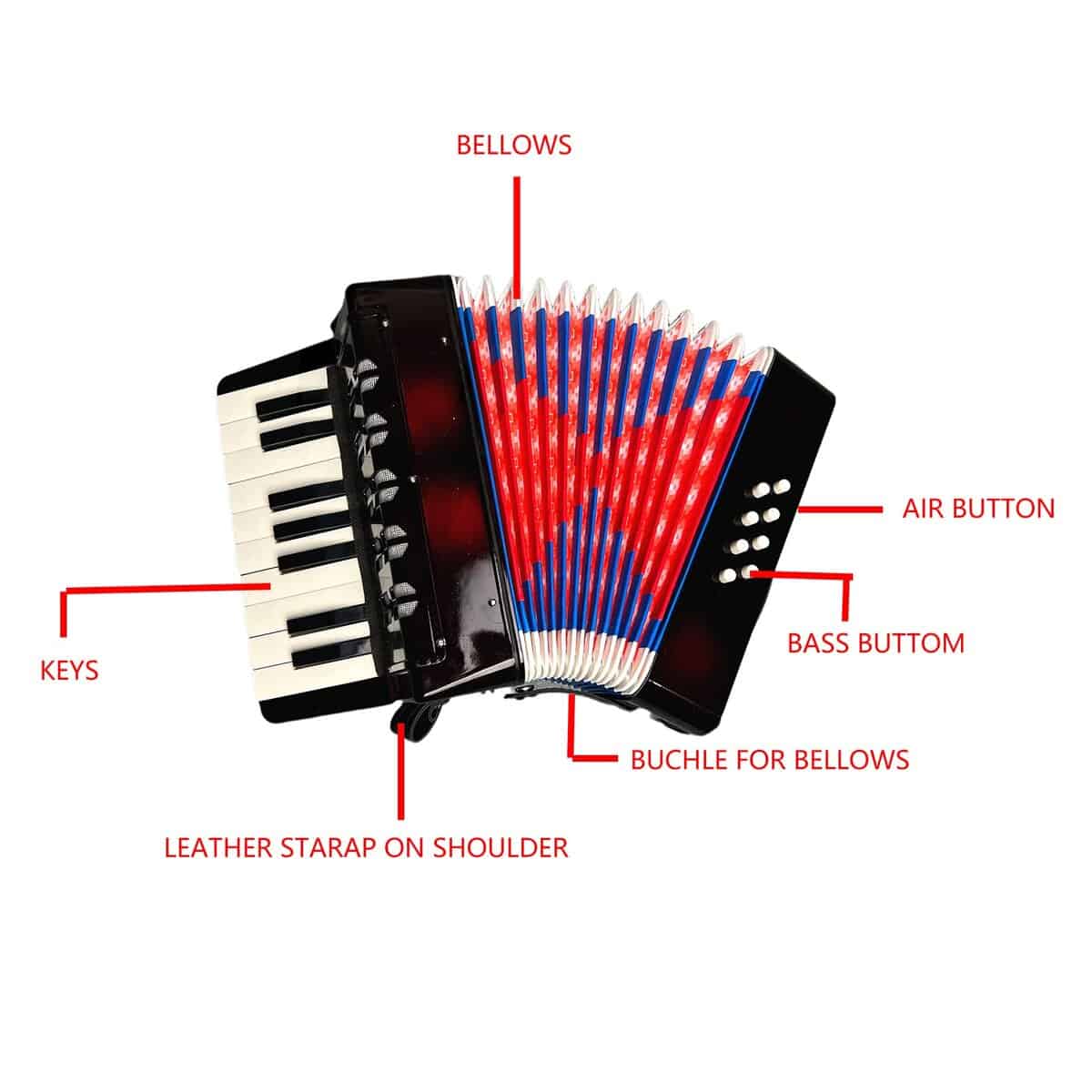 Acordeón de 17 Teclas 8 Bajos, Instrumento de Teclado,