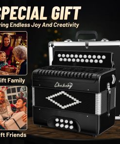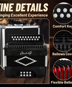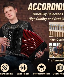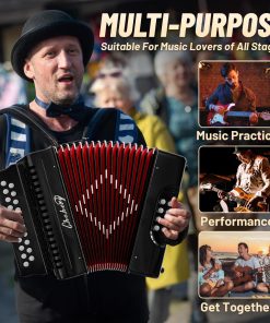 1. DISEÑO DE ACORDEÓN VERSÁTIL: El Acordeón de 21 Teclas y 8 Bajos cuenta con un innovador mecanismo diatónico de empuje-tiro, lo que lo hace perfecto tanto para músicos profesionales como principiantes. Este diseño versátil permite a los músicos explorar una amplia gama de tonos de forma sencilla, atrayendo a todos los amantes de la música.