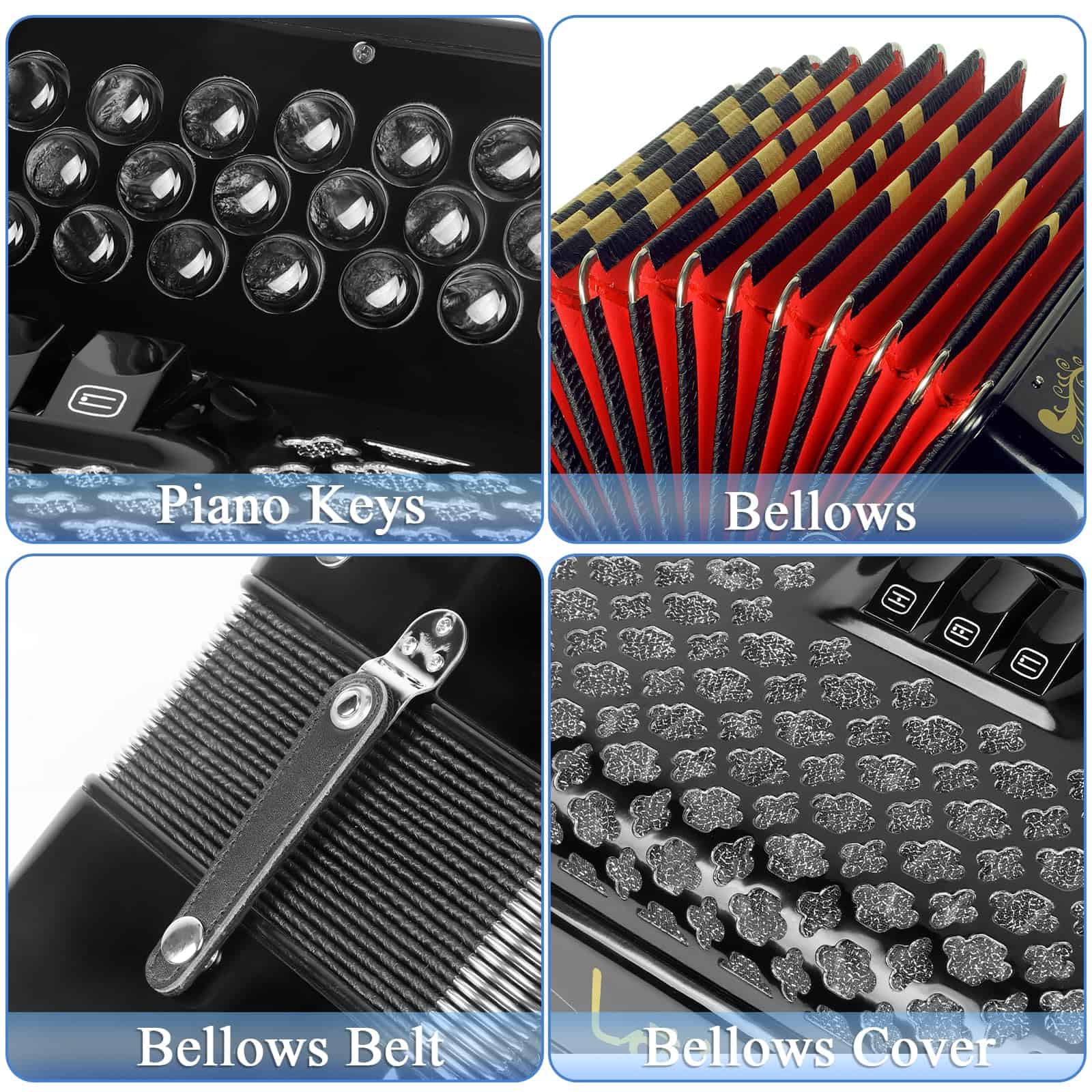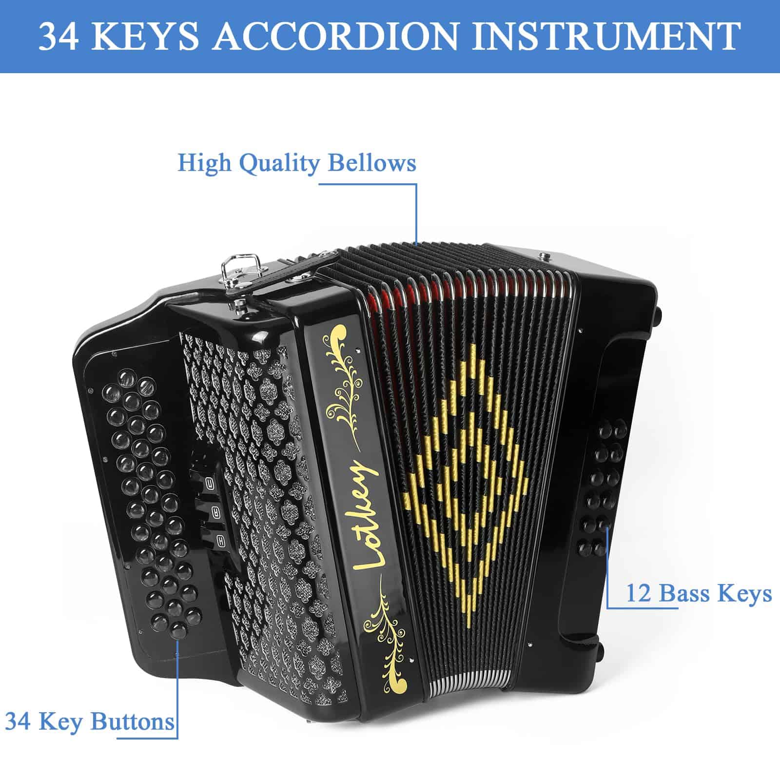 Acordeón de Botones Diatónico Lotkey de -Negro