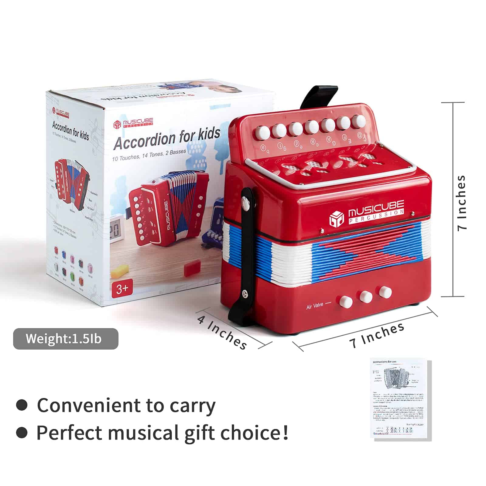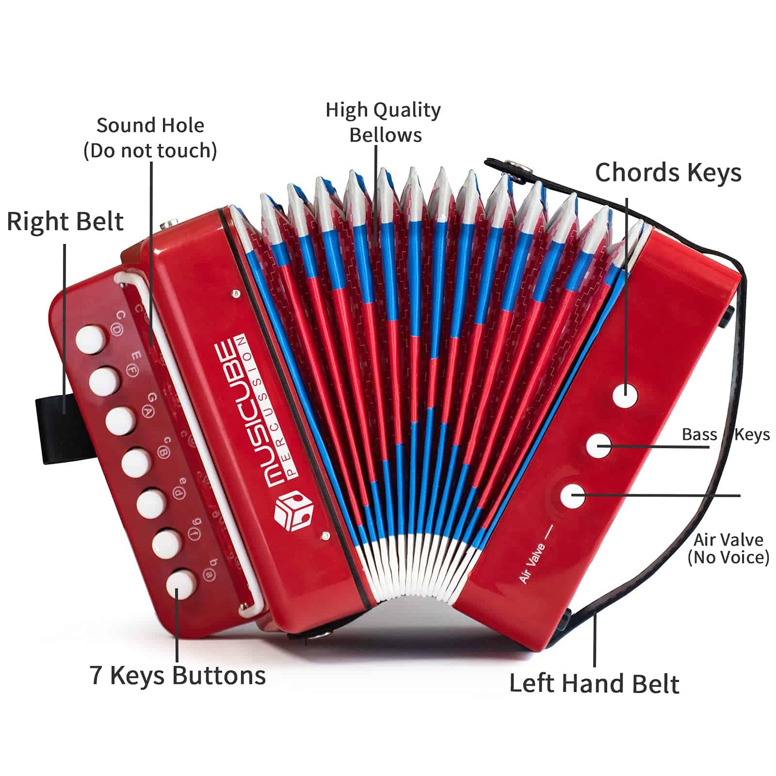 Acordeón de Juguete Infantil MUSICUBE de 10 Teclas Rojo