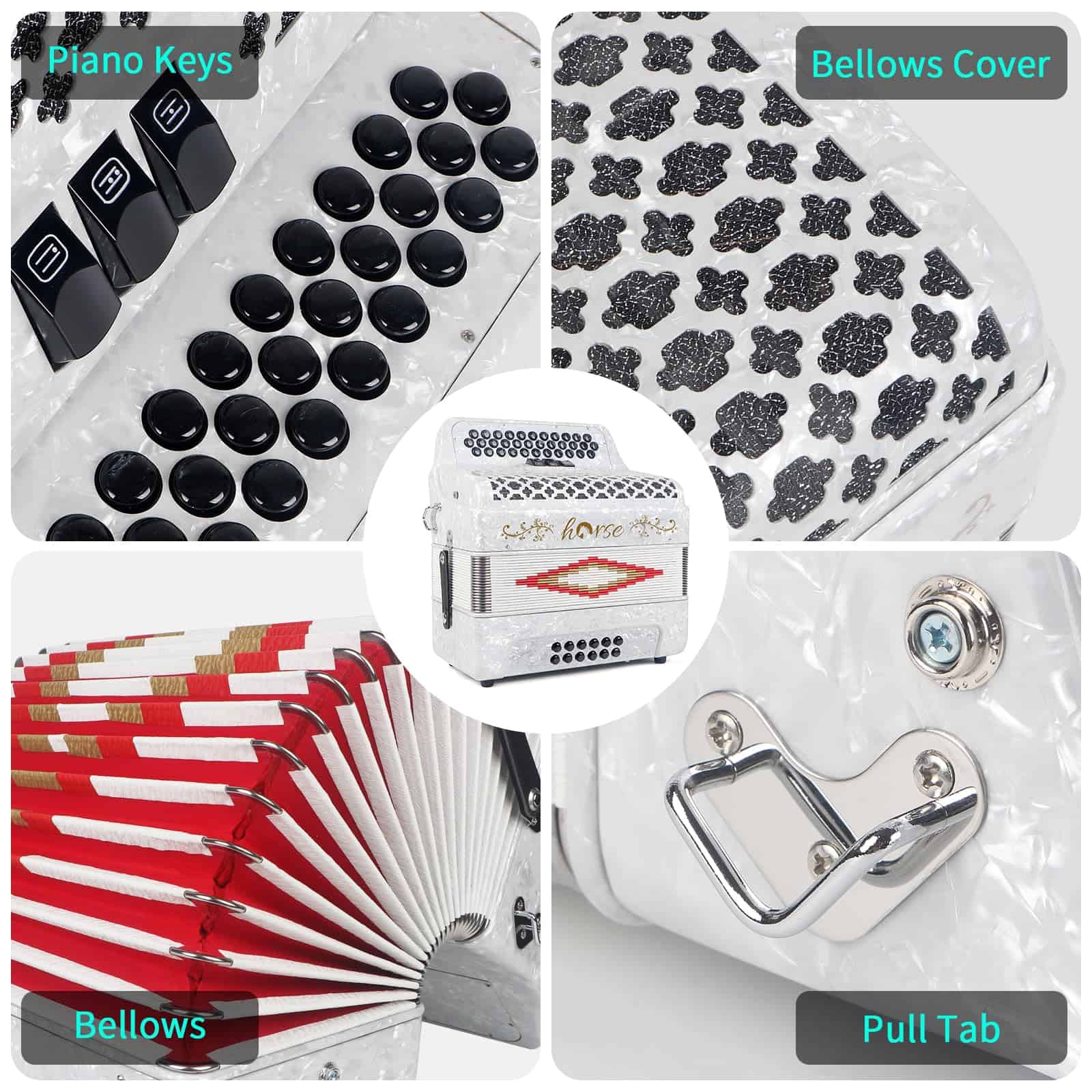 Acordeón Diatónico de 34 Teclas 12 Bajos Instrumento para