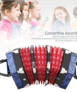 Característica: 1. Esta concertina tiene una forma hermosa y única, disponible en 3 colores, de gama alta y elegante. 2. El acordeón tiene una correa de mano ajustable, adecuada para adultos y niños. 3. Color brillante, hermoso aspecto, mano de obra exquisita, diseño ergonómico, flexible y fácil de usar. 4. Ayuda a desarrollar talentos musicales y mejorar el sentido del ritmo, adecuado para principiantes y estudiantes de acordeón. 5. Este acordeón viene con una bolsa, que es fácil de transportar y almacenar, conveniente y práctico. Especificación: Tipo de artículo: Acordeón Concertina Material: Madera sólida + cuero + revestimiento de celuloide Ámbito de aplicación: Niños/adultos/interpretación/principiantes Tamaño: Aprox. 18 x 17 x 17 cm / 7.1 x 6.7 x 6.7 pulgadas Lista de paquetes: 1 x Acordeón Concertina 1 x Bolsa de transporte