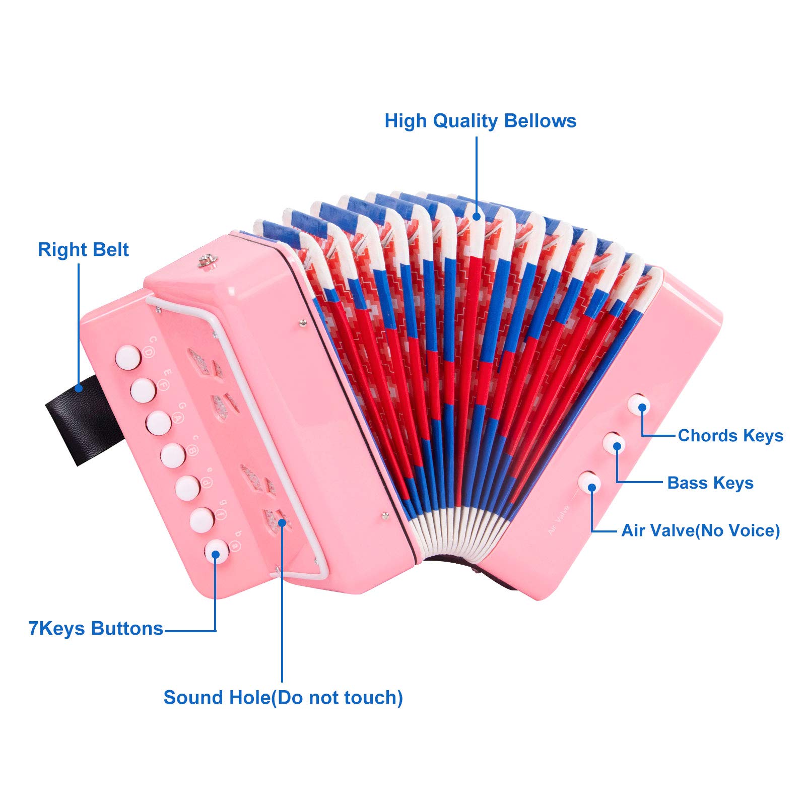 1. Con buen timbre y durabilidad, el acordeón de 7 teclas vocales es un verdadero instrumento musical, los mejores regalos musicales de Navidad o cumpleaños para niños principiantes.