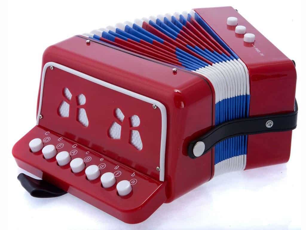Este adorable acordeón para niños es ideal para niños pequeños y niños. Este acordeón infantil cuenta con 7 botones de flauta y 2 botones de bajo. ¡Este juguete de acordeón es un maravilloso regalo para ese niño especial y es una gran compra por el dinero! El acordeón proyecta un agradable sonido cálido de acordeón que seguramente entretendrá. Disponible en negro, azul, rojo y verde.
