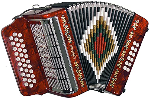El Paquete de Acordeón SofiaMari SM-3112 incluye un Acordeón Diatónico de 31 Botones 12 Bajos recién diseñado con un Diseño de Fuelle de Diamante Multicolor, Correas de Cuero de 2.5″ de ancho con arnés y un nuevo estuche con ruedas plegable con asa telescópica, diseñado para una protección máxima.