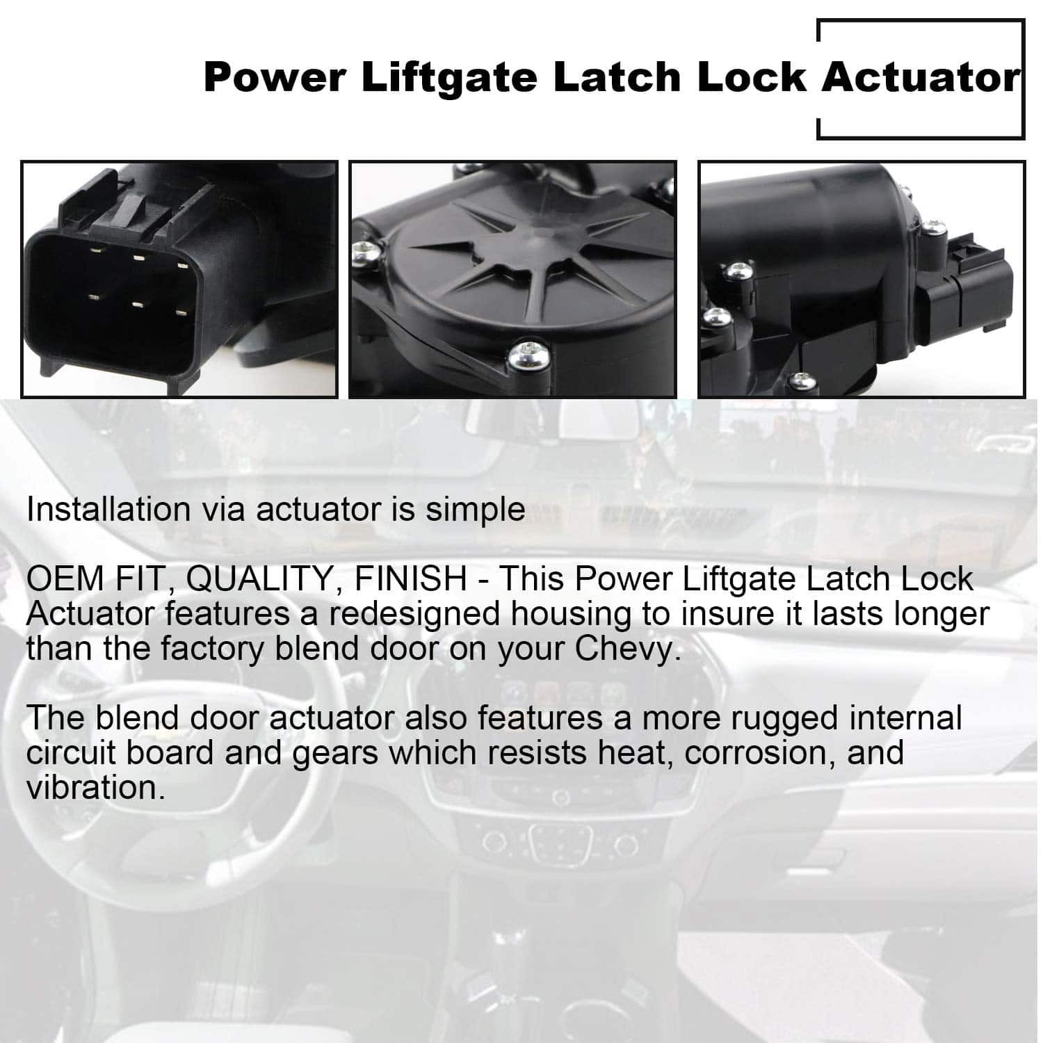 Número de reemplazo: 13501872, 13581405, 1583903, 13502698, 13503467, 15163842, 15779874, 15839037, 931-107, 84243380. AJUSTE: GMC Acadia 2007-2017, GMC Acadia Limited 2017, GMC Terrain 2010-2017, GMC Yukon 2007-2014, GMC Yukon XL 1500 2007-2014, GMC Yukon XL 2500 2007-2013, Saturn Outlook 2007-2010, Chevy Equinox 2010-2017, Chevy Suburban 1500 2007-2014, Chevy Suburban 2500 2007-2013, Chevy Tahoe 2007-2014, Chevy Traverse 2009-2017, Buick Enclave 2008-2017, Cadillac CTS 2010-2014, Cadillac Escalade 2007-2014, Cadillac Escalade ESV 2007-2014, Cadillac SRX 2006-2016.