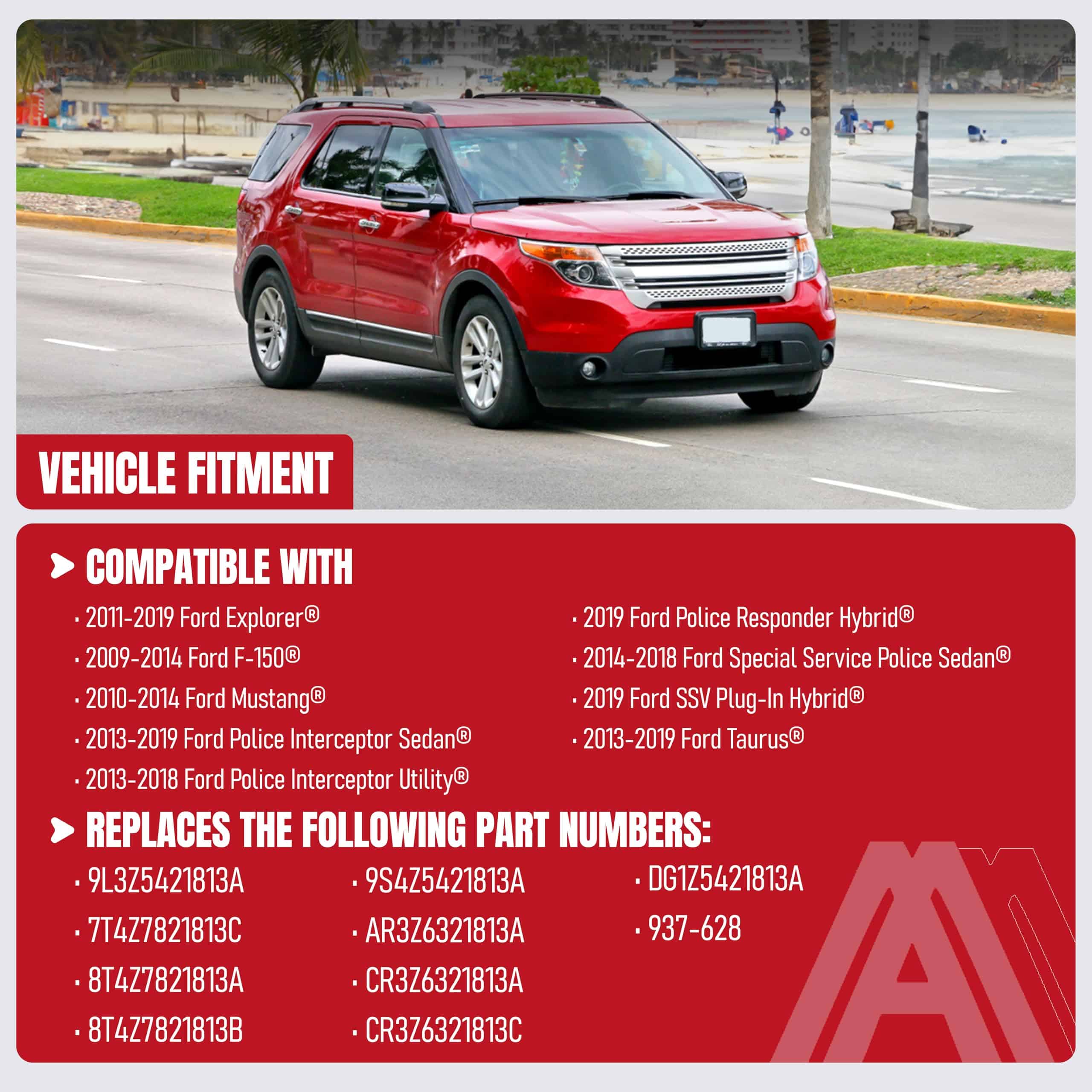 2. REEMPLAZO COMPATIBLE PARA VEHÍCULOS FORD – 2011, 2012, 2013, 2014, 2015, 2016, 2017, 2018, 2019 Explorer | 2009, 2010, 2011, 2012, 2013, 2014 F-150 | 2010-2014 Mustang | 2013-2019 Police Interceptor Sedan | 2013-2018 Police Interceptor Utility | 2019 Police Responder Hybrid | 2014-2018 Special Service Police Sedan | 2019 SSV Plug-In Hybrid | 2013-2019 Taurus.
