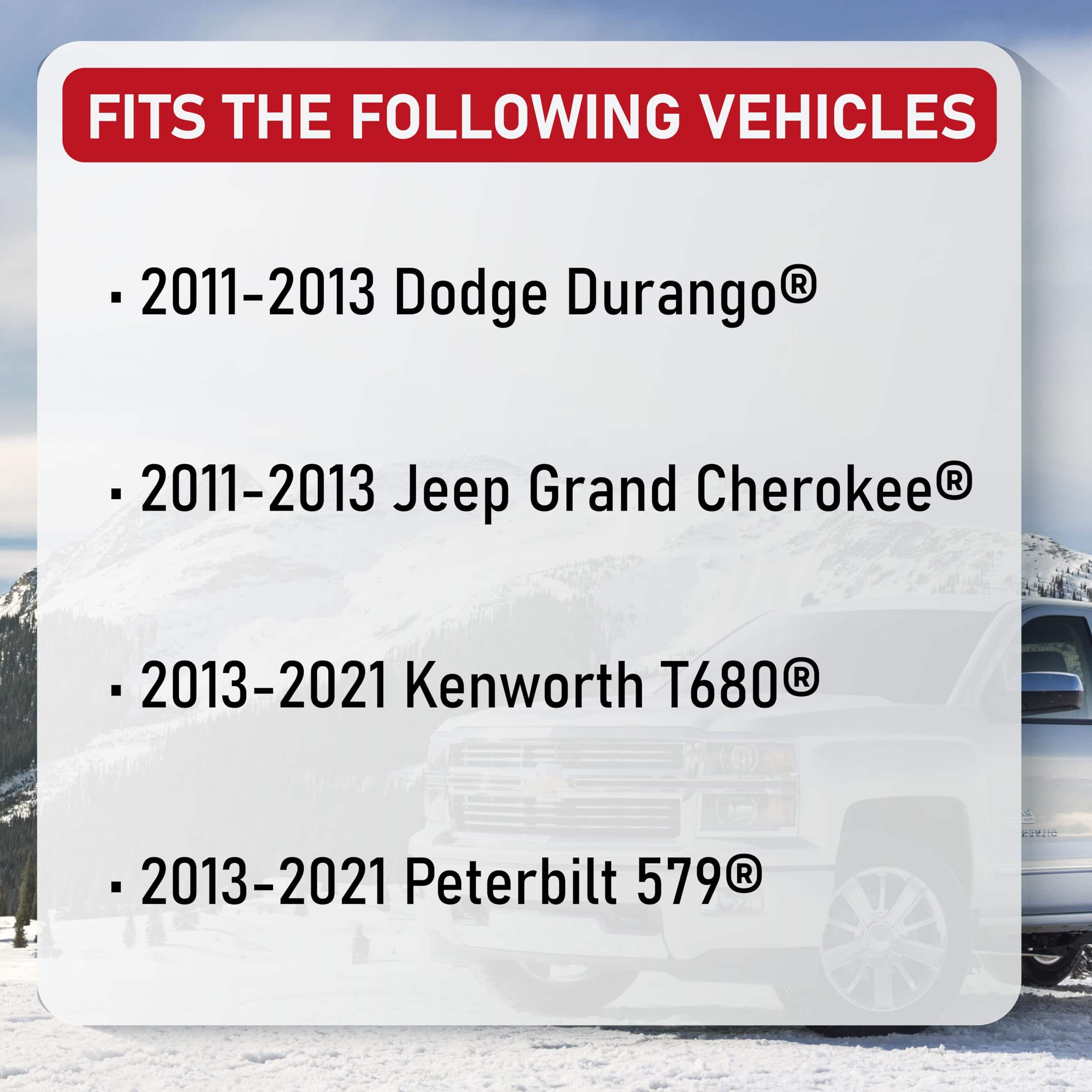 2. COMPATIBLE CON VEHÍCULOS DODGE, JEEP, KENWORTH Y PETERBILT – Durango 2011, 2012, 2013 | Grand Cherokee 2011, 2012, 2013 | T680 2013, 2014, 2015, 2016, 2017, 2018, 2019, 2020, 2021 | 579 2013, 2014, 2015, 2016, 2017, 2018, 2019, 2020, 2021. Si el actuador de la puerta de mezcla falla, los sistemas de aire acondicionado y calefacción pueden no funcionar correctamente, lo que resulta en temperaturas incómodas en tu auto.