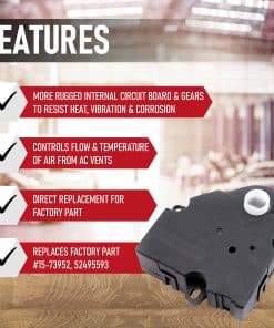 Compatibilidad Universal – Nuestro actuador de puerta de mezcla es adecuado para numerosos modelos de Chevrolet, GMC, Cadillac y Hummer de los años 2003 a 2014. Al reemplazar su actuador de puerta de aire defectuoso con este actuador de alta calidad, puede estar seguro de restaurar una operación óptima del sistema de calefacción y refrigeración de su vehículo.