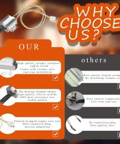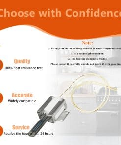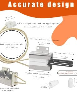 El Ignitor de Horno 316489403 es compatible con una variedad de modelos como Frigidaire BGGF DGGF CFGF CGGF FFGF FFGH FGF FGGF LGGF, Kenmore 790, Electrolux CEI30G CEW30G EI30 EW3, Crosley CRG CFGF CGLGF CPGF, White-Westinghouse WWGF, Tappan TGF, entre otros. Tiene una longitud de aproximadamente 15.15 pulgadas y viene con dos tuercas de cerámica aislantes. Tenga en cuenta que la parte del elemento calefactor es más frágil, por lo que no debe tocarse con las manos; se incluye un embalaje de esponja suave para protegerlo durante el envío.