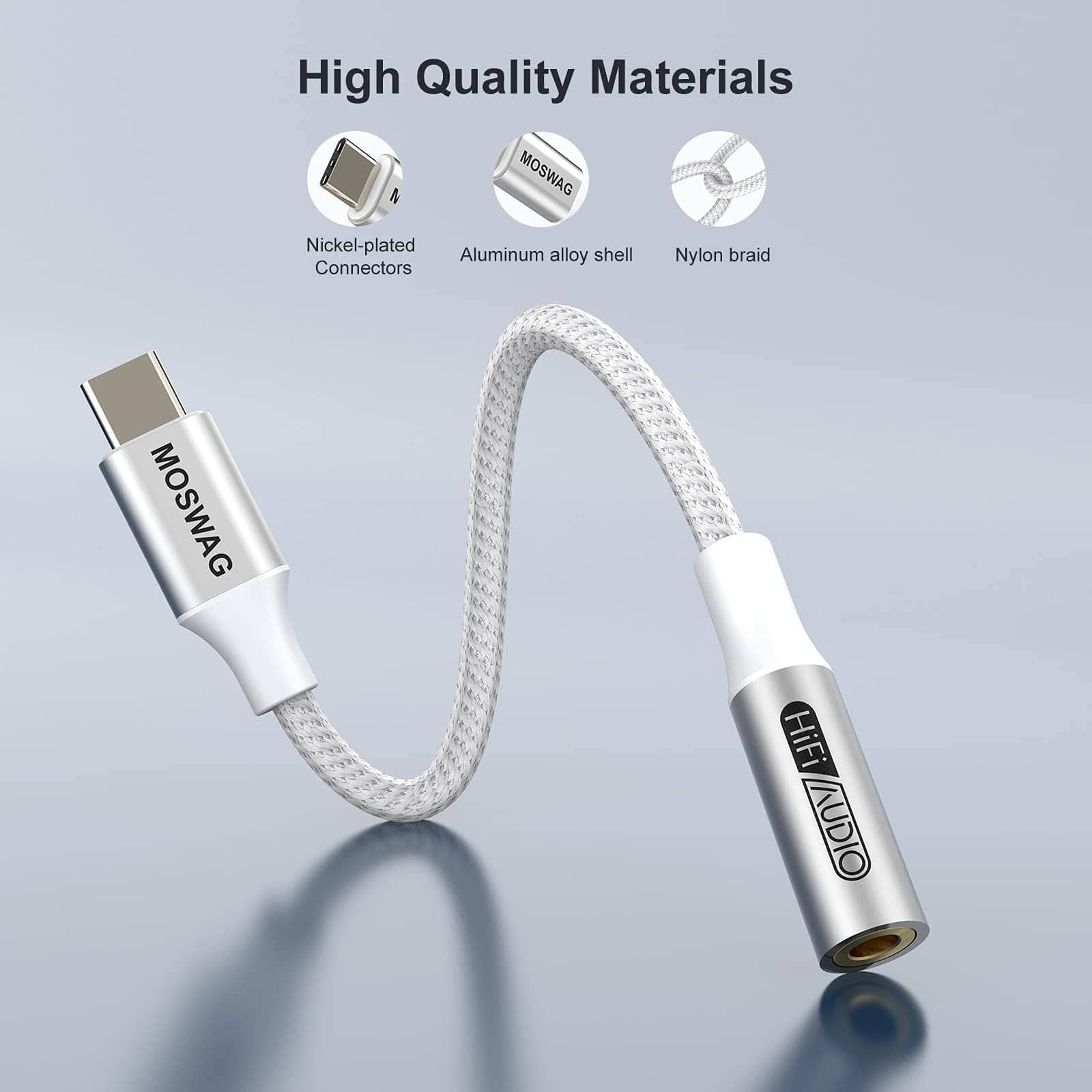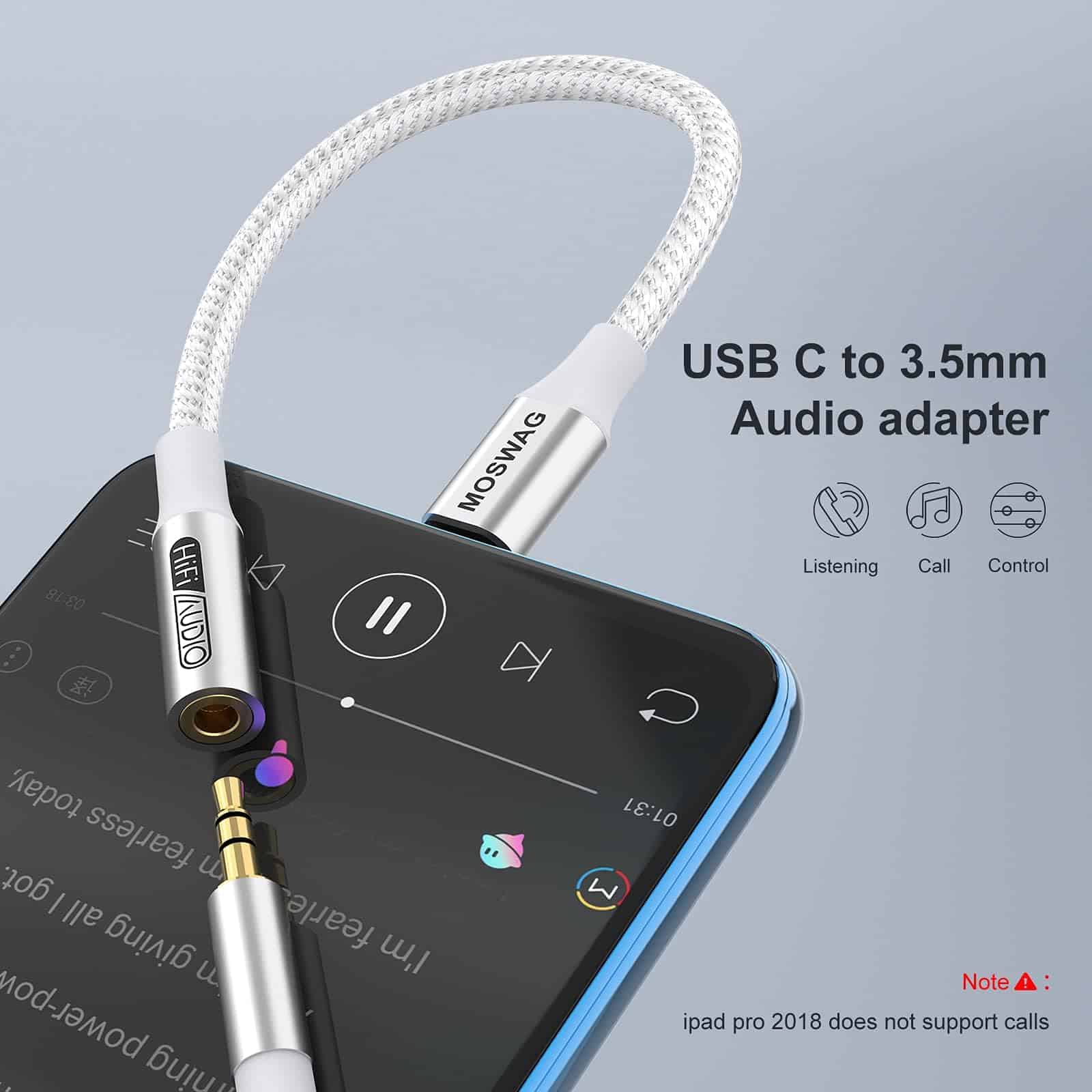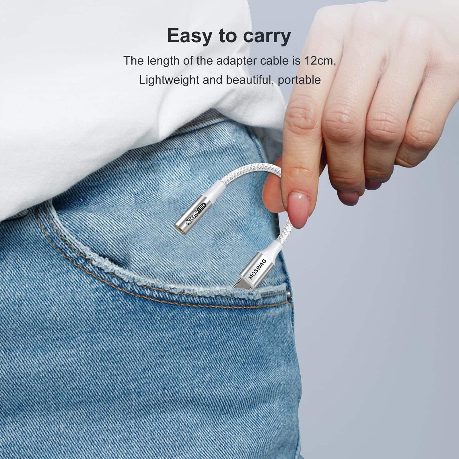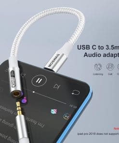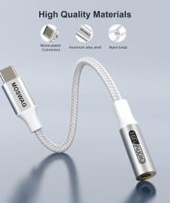 1. Multi-función Dongle Este compacto adaptador USB-C a auxiliar te permite escuchar música y contestar una llamada telefónica con tu audífono y también soporta la función de control de alambre. 2. Amplia compatibilidad El adaptador de auriculares USB Type C a 3.5mm es compatible con la mayoría de los teléfonos tipo C: pixel 5 4 3 2 XL, Samsung Galaxy S21, S21+, S21 Plus, S21 Ultra 5G, S20 FE Ultra Z Flip S20+ s10 s9 s8 plus, el nuevo note 20/20 Ultra 5G, note 10 9 8, Huawei mate 30 20 10 pros, p30 p20, One plus 6T 7 7Pro, Moto z y más. 3. Plug and Play No se necesita descargar software con el Adaptador de Audio MOSWAG; Pequeño y ligero, fácil de llevar contigo; Desbloquea el mundo del audio Hi-Fi en cualquier momento y en cualquier lugar con este Cable USB C a Aux. 4. Diseño de trenzado de nylon Con el diseño de alivio de tensión, este adaptador puede soportar más de 15000 pruebas de flexión, lo que hace que este adaptador sea mucho más duradero. 5. Lo que obtienes El paquete incluye 10 adaptadores de audio MOSWAG USB C a Jack de 3.5mm. Y todos nuestros productos tienen una garantía posventa de 12 meses. Si tienes algún problema, no dudes en contactar a nuestro servicio al cliente.