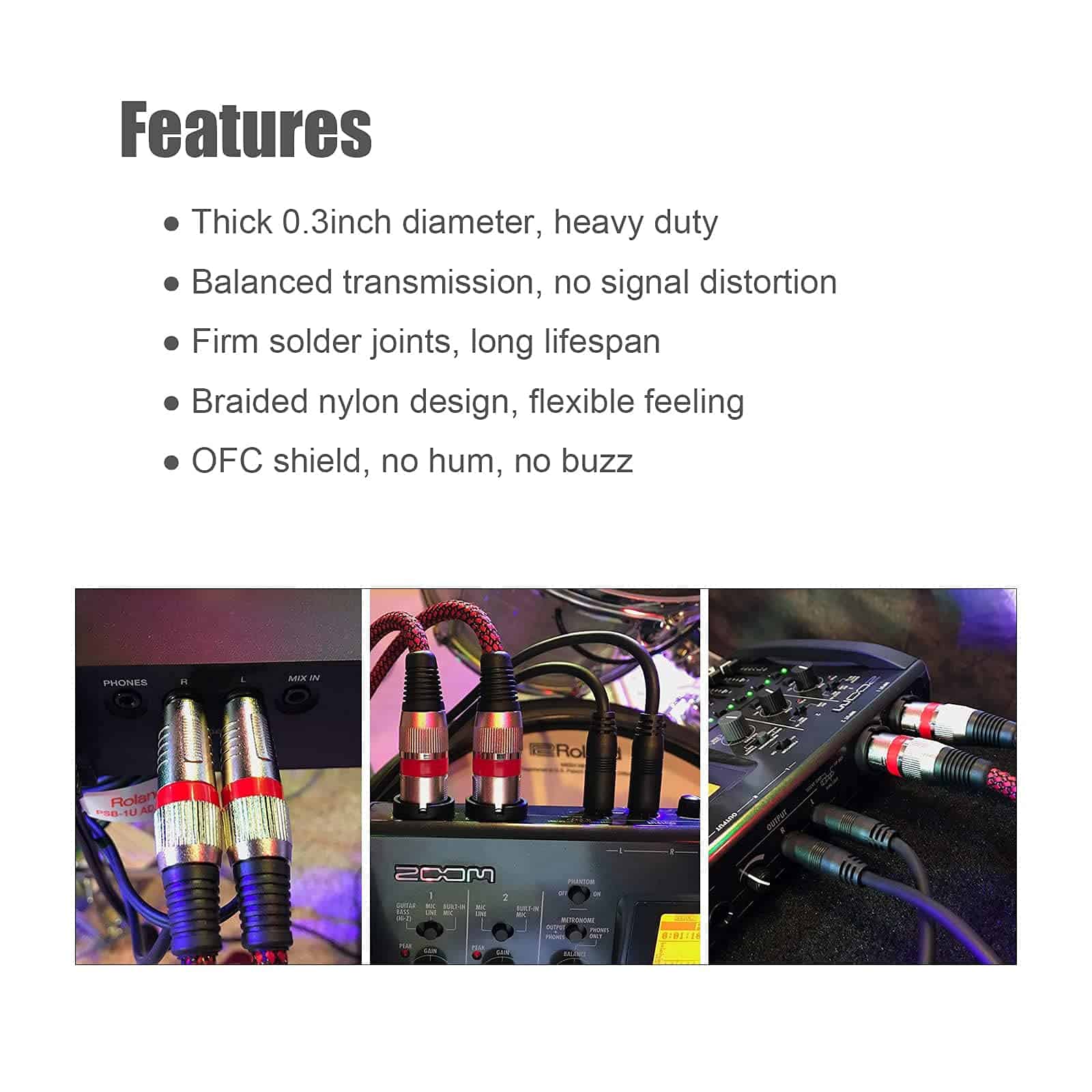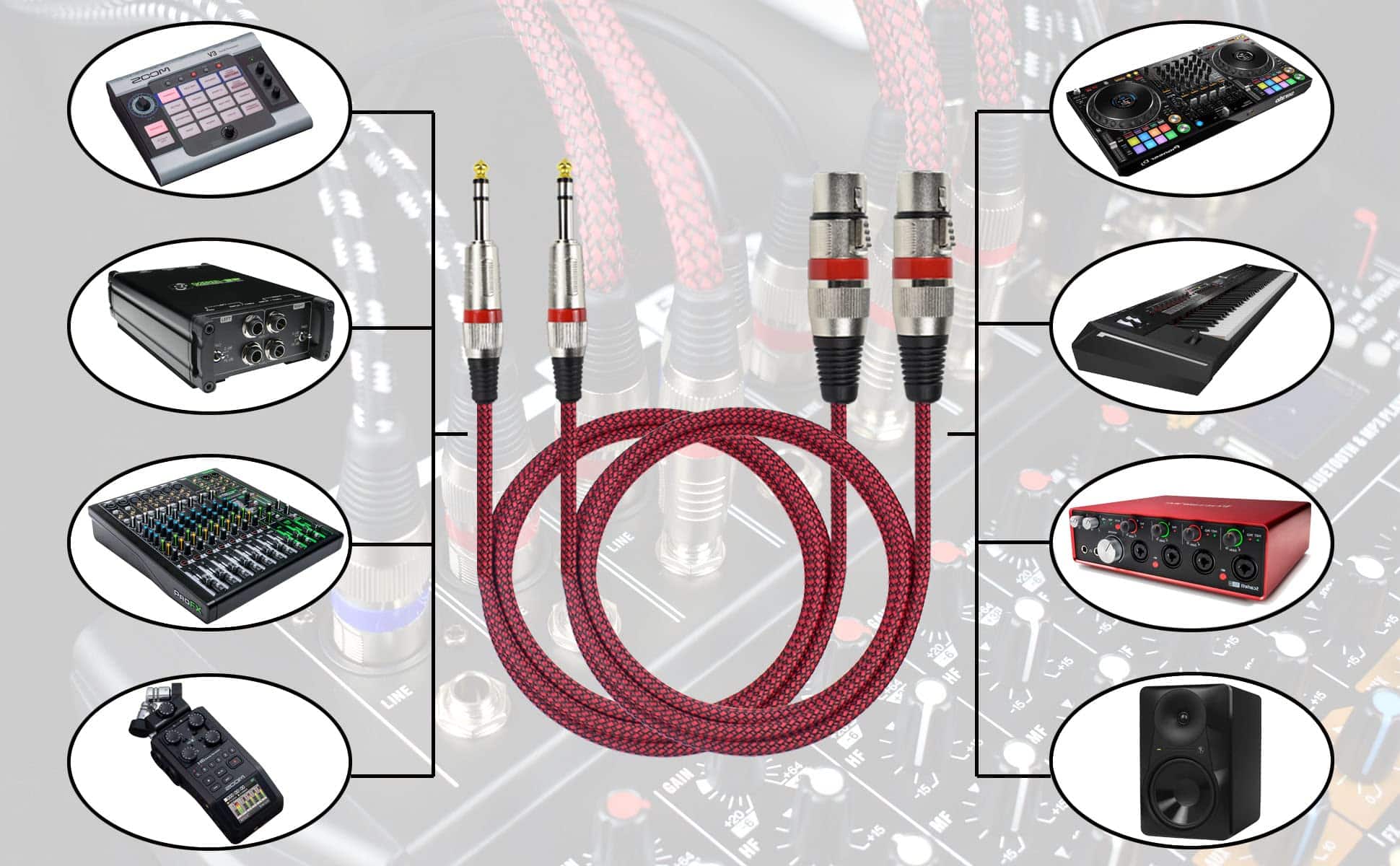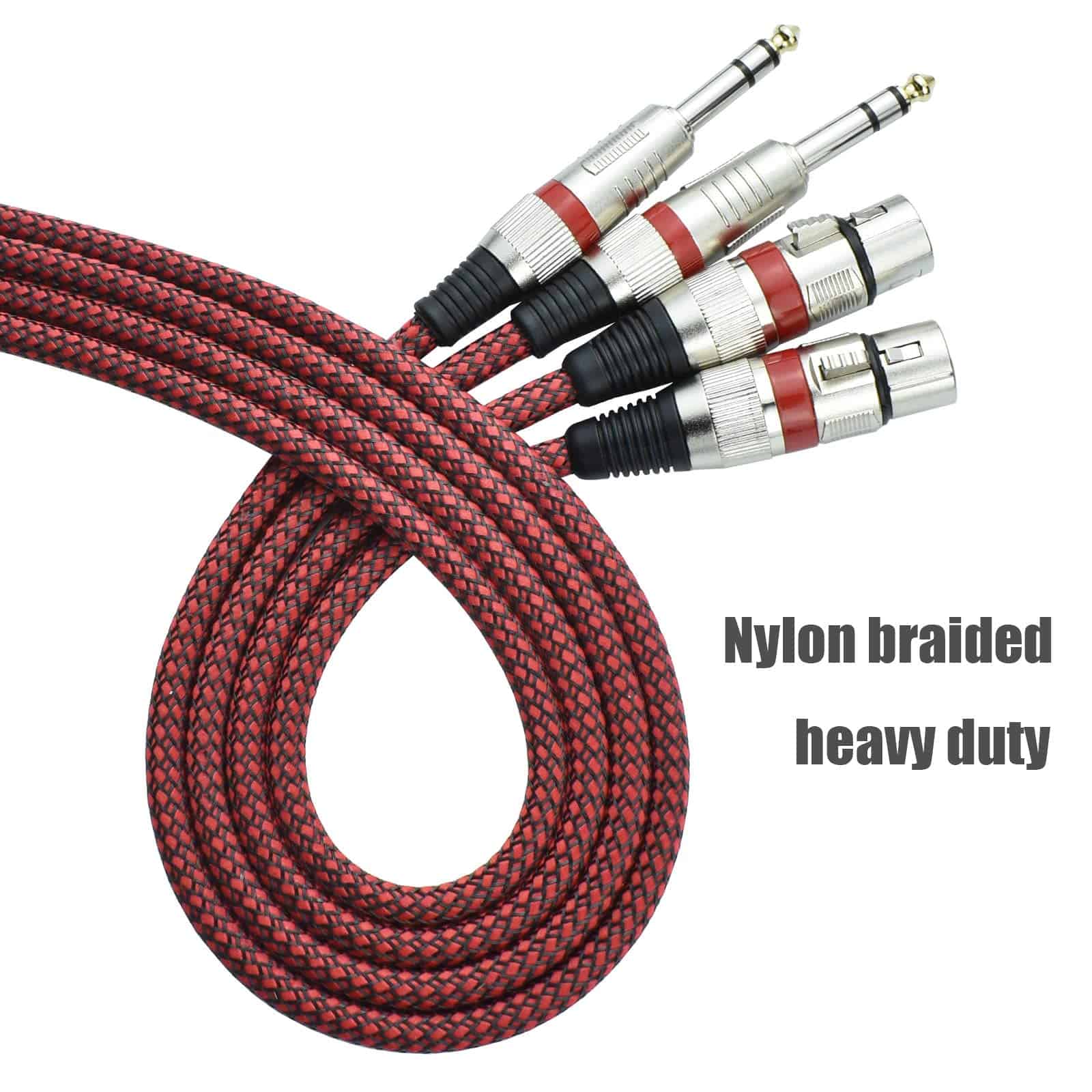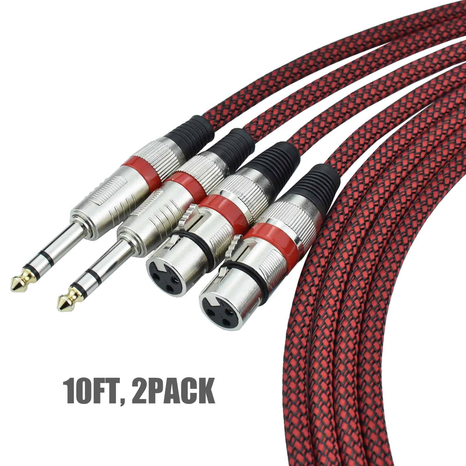 Adaptador de cable Mugteeve 1/4″ TRS a XLR Hembra Balanceado, Cable de micrófono TRS estéreo de 10 pies a XLR, ideal para conectar micrófonos, altavoces y mesas de mezclas. Fabricado con materiales de alta calidad, trenzado de nailon para mayor durabilidad y blindado con OFC para garantizar una transmisión de señal sin interferencias. Color rojo vibrante que agrega un toque de estilo a su equipo de audio.