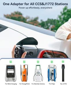 2. SOLUCIÓN DE CARGA TODO EN UNO PARA TESLA: El adaptador ChargeWell 2 en 1 CCS & J1772 a CCS permite que su Tesla se conecte sin problemas con equipos de carga CCS1 y J1772, brindando acceso a prácticamente todas las redes de carga. Elimine la tensión de encontrar supercargadores o enfrentar desafíos de compatibilidad: ¡cargue en cualquier lugar con facilidad!.