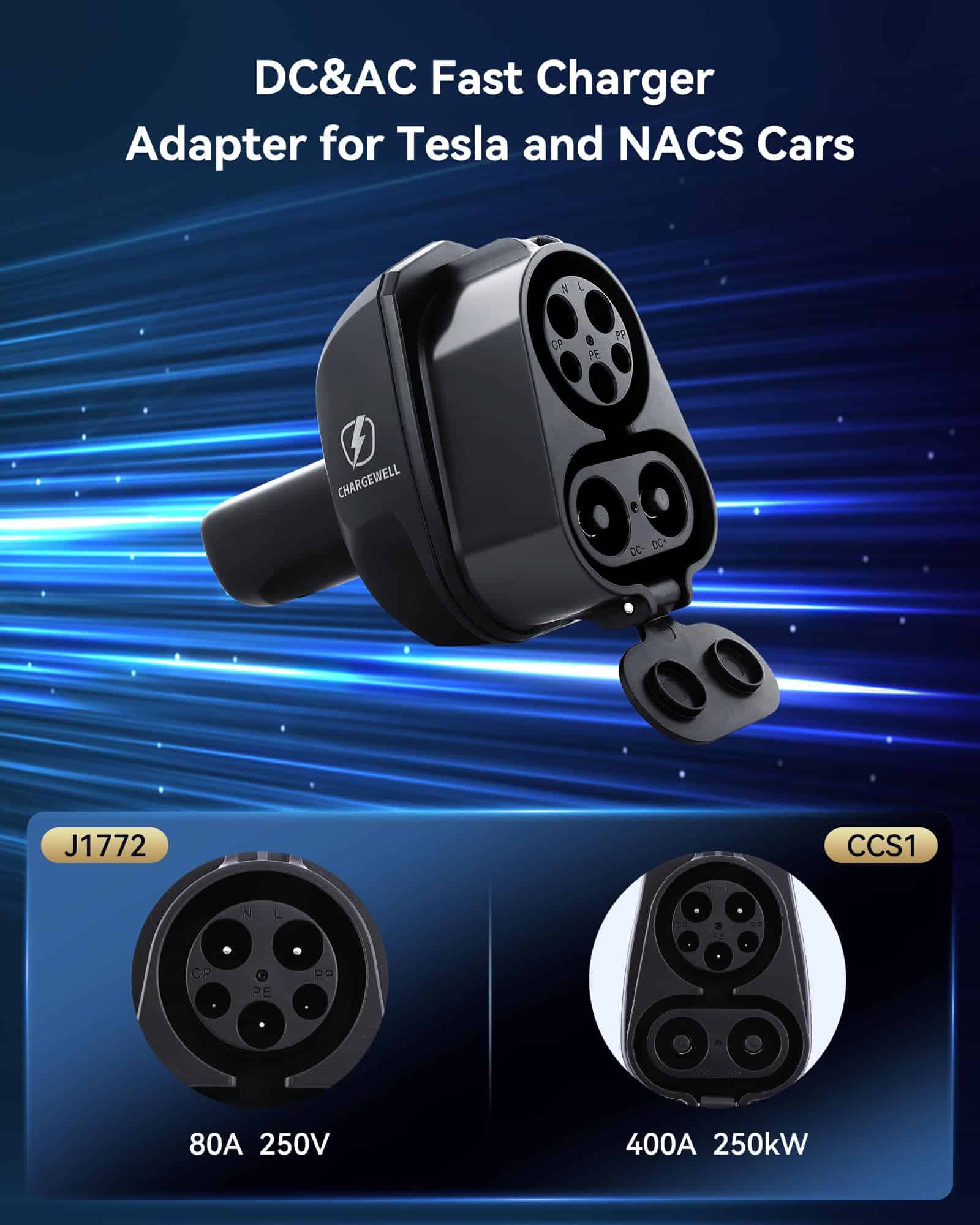 Adaptador de Carga CHARGEWELL 2 en 1 CCS y J1772 a Tesla,