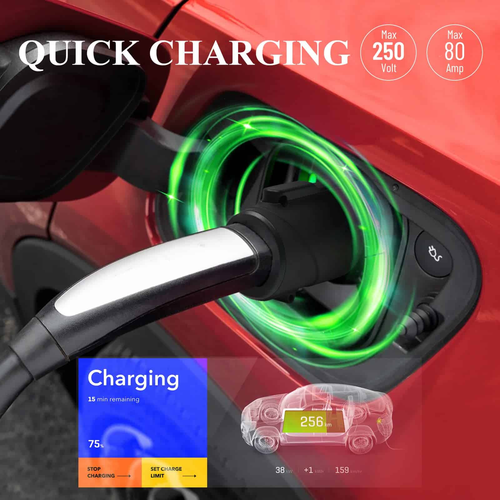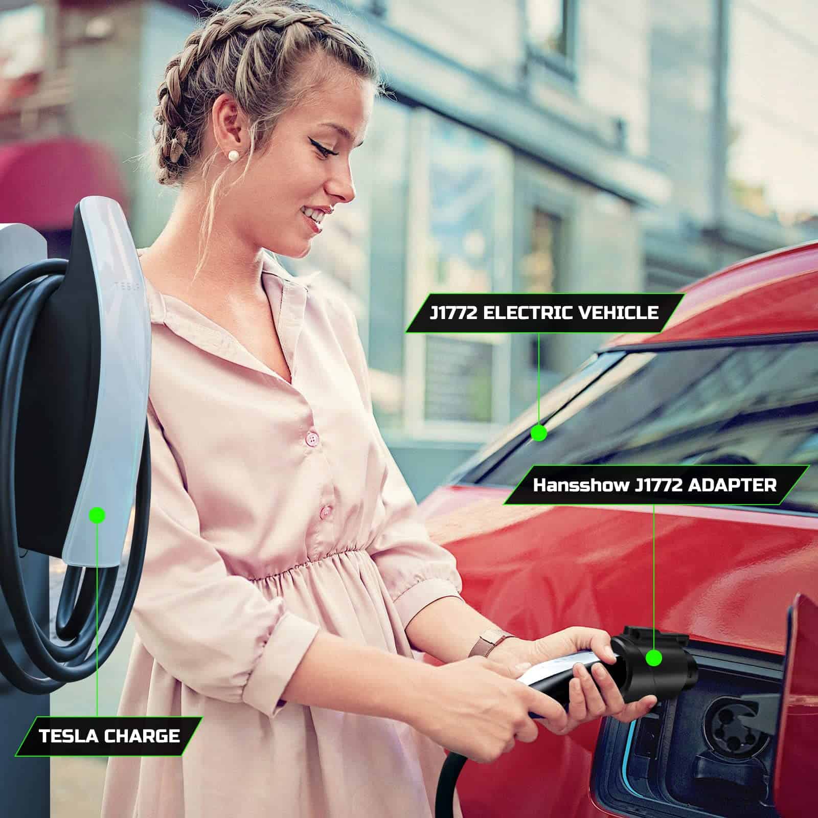 Adaptador de carga Hansshow Tesla a J1772, Max 80 Amp y