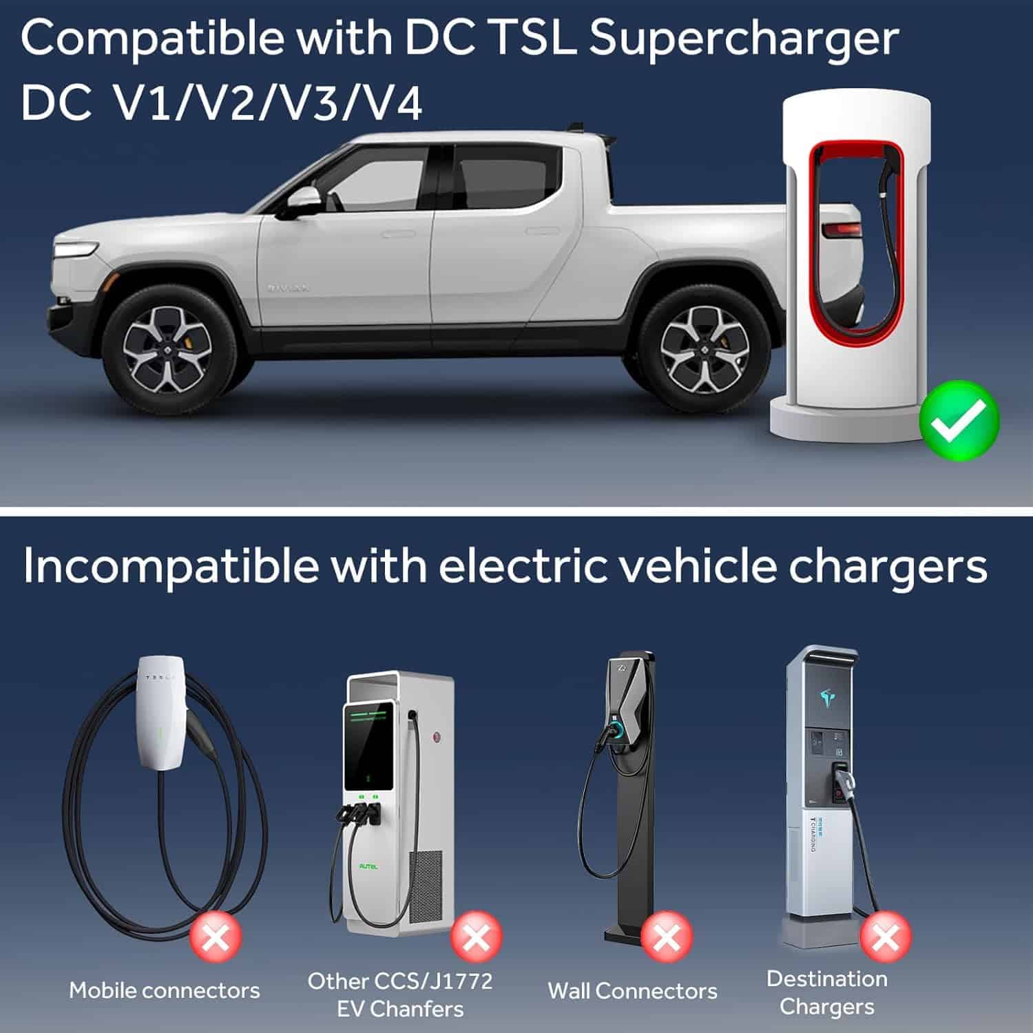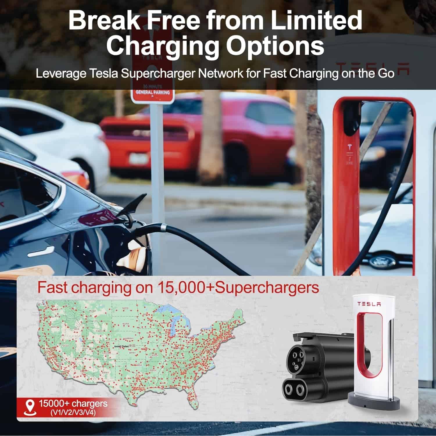 El adaptador NACS a CCS1 te brinda la posibilidad de cargar tu vehículo eléctrico CCS1 en los Super Cargadores de Tesla de forma rápida y segura. Con una amplia compatibilidad que abarca más de 17,818 puertos de Super Cargadores de Tesla, podrás disfrutar de una solución de carga rápida en diversas ubicaciones. Este adaptador es compatible con modelos de Ford como el Mustang Mach-E, E-Transit, F-150 Lightning, F-150, Maverick, Escape ST-Line Elite Hybrid y Escape Plug-in Hybrid, así como con vehículos eléctricos Rivian (R1T R1S R2 R3) y vehículos eléctricos basados en la plataforma Ultium de Cadillac y GMC.